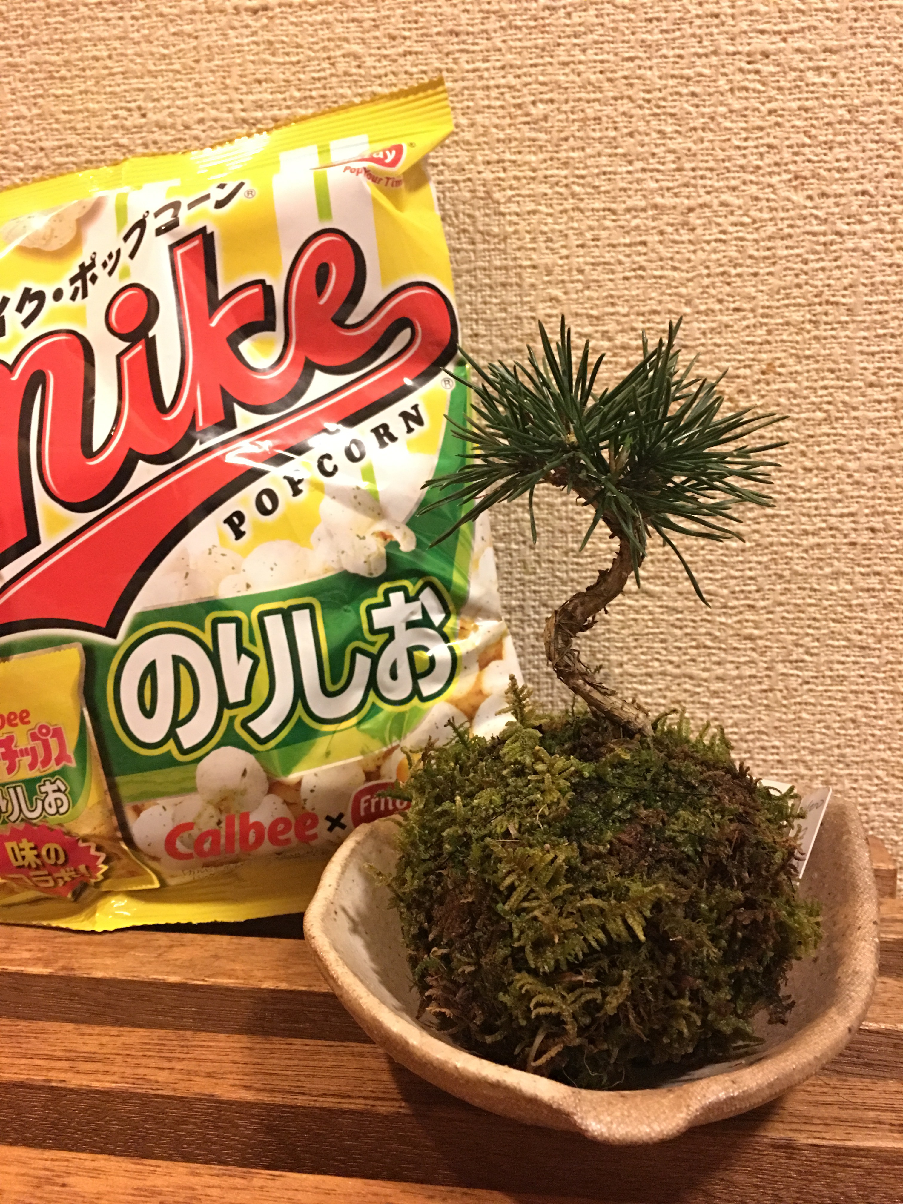 帰りにどっかのお店で苔玉に松の木が植えているものを見つけて購入しました。