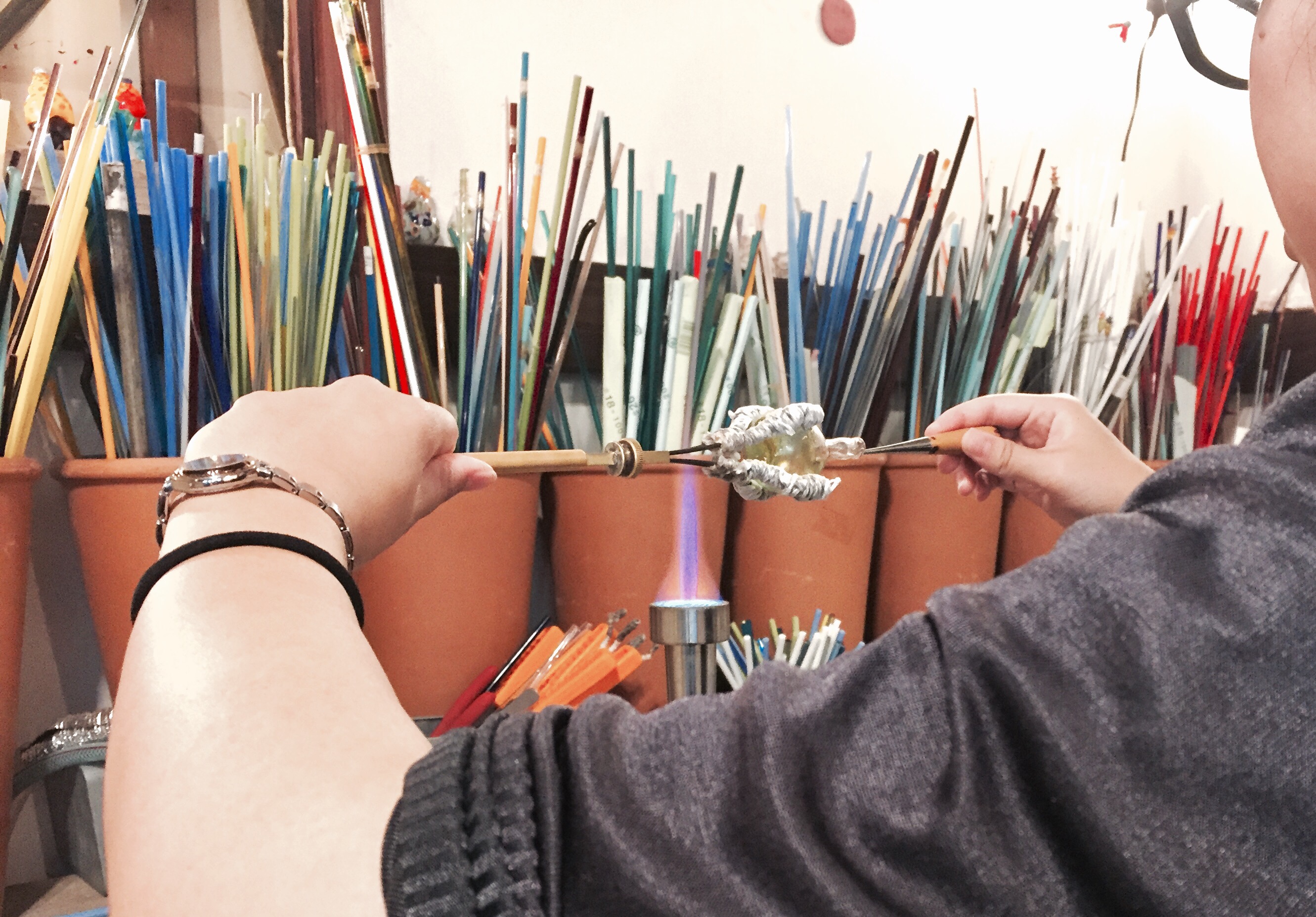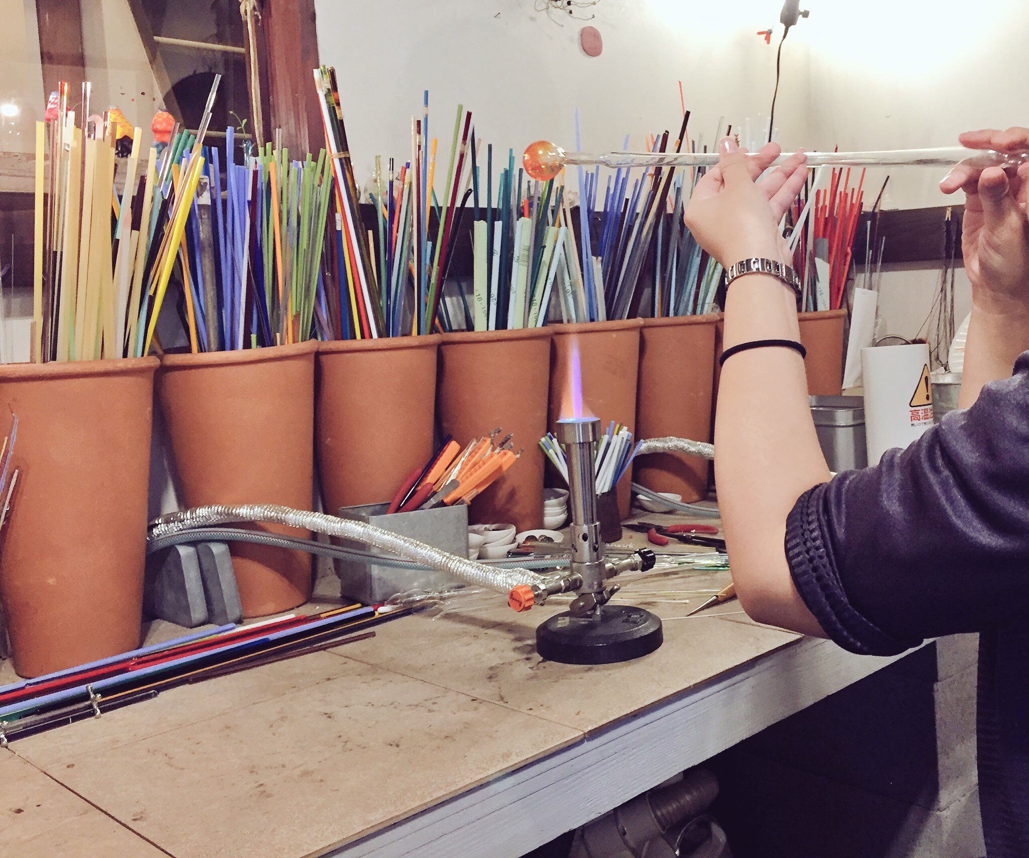 前回に引き続き、ガラス工房薺さんでの体験教室のお話をさせていただきます!