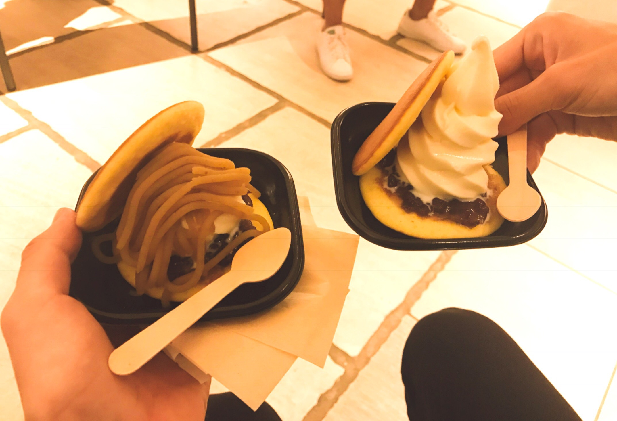 手前はその上にモンブランが乗ってる生どら焼きソフト栗です🙌🏻✨