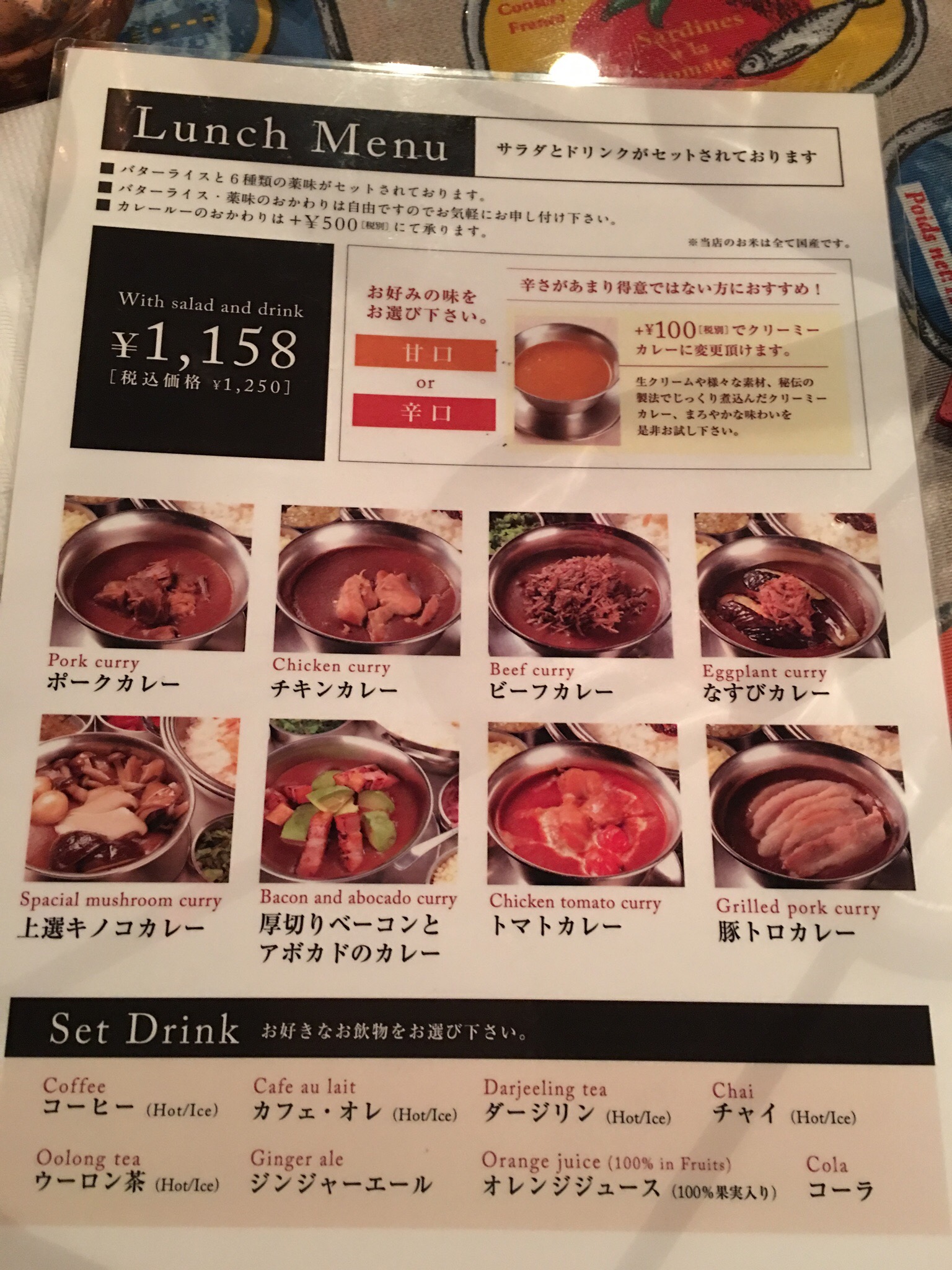 今回は先日食べたカレーランチをご紹介したいとおもいます。