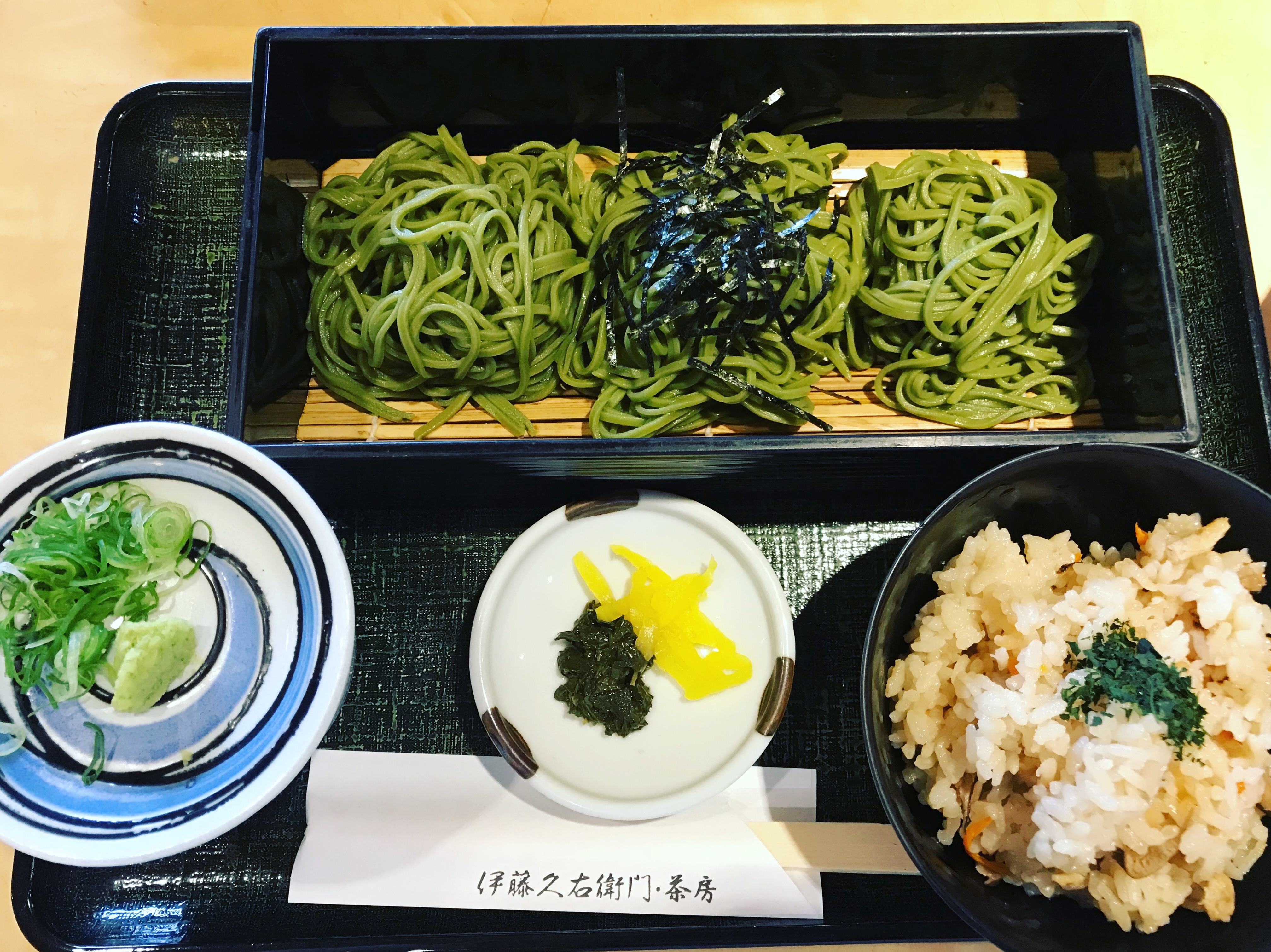『伊藤久右衛門』さんへ行き、茶蕎麦とかやくご飯のセットを頂きました✨✨