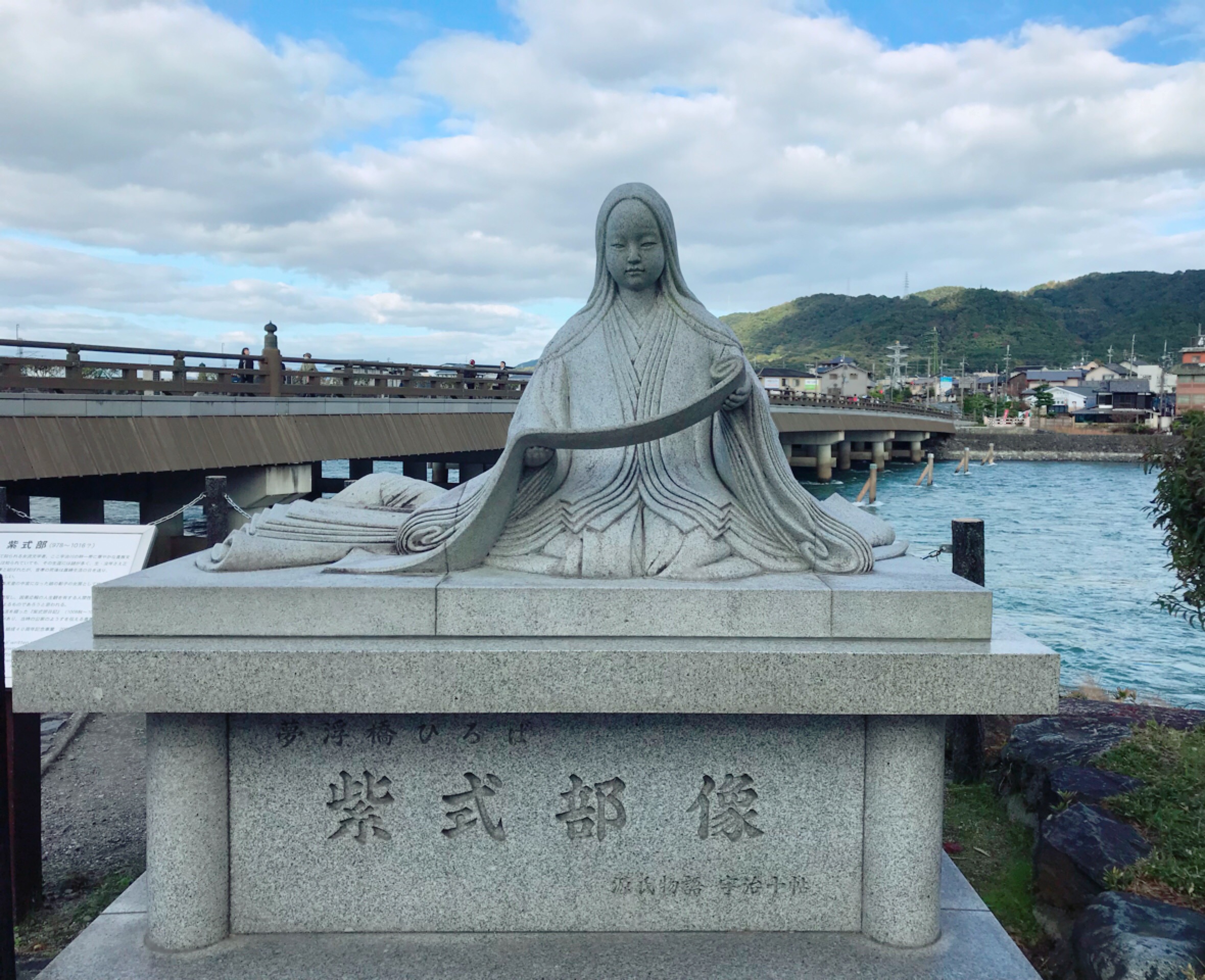 電車を降りて、橋の方へ向かうと紫式部さん!