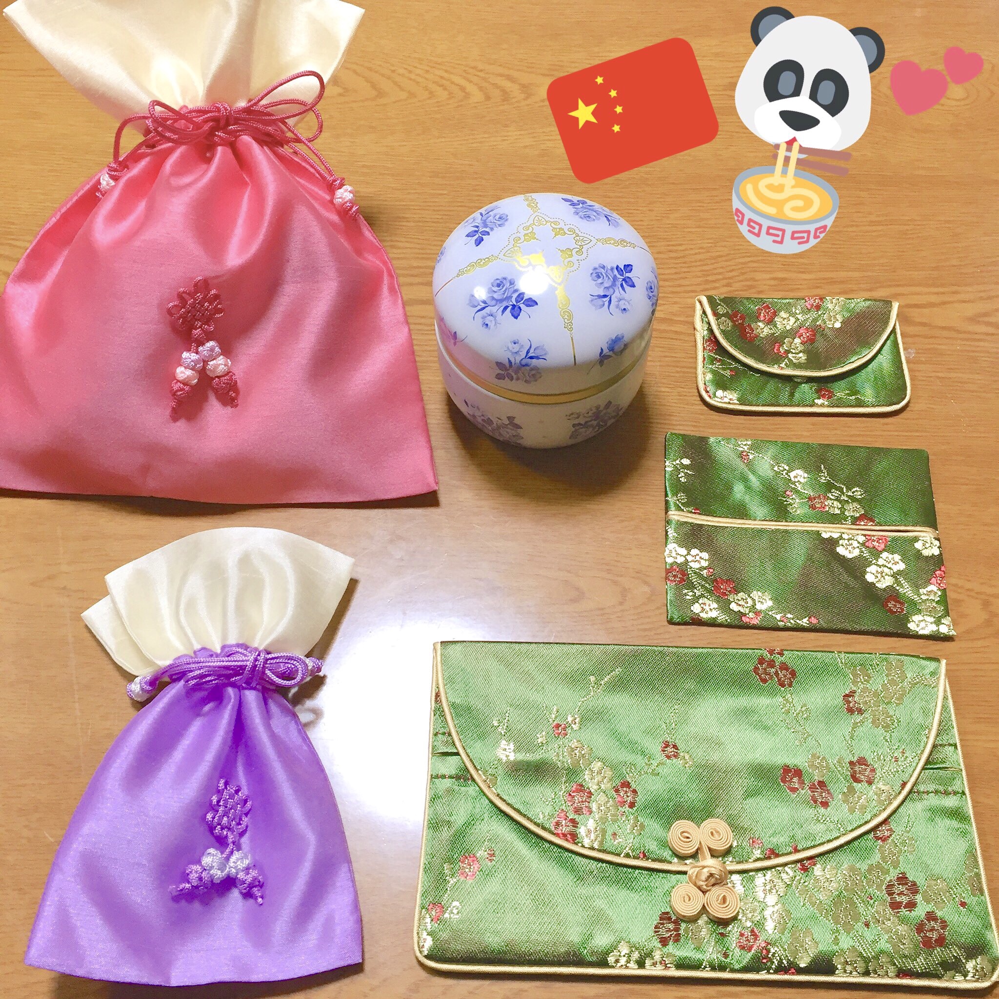 カラフルな巾着やセットになっているチャイナ柄ポーチ、あと可愛い缶に入っているのは凍頂烏龍茶の茶葉です😊🌸🌸