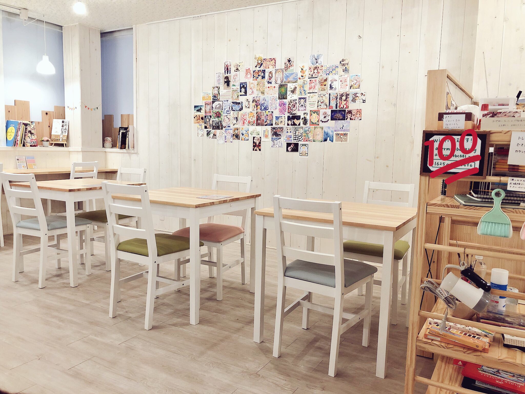 まったり絵を描いたり物を作ったりできるカフェです。なんとカフェに置かれている絵の具や色鉛筆などの画材が無料で使わせてもらえるんです!✨