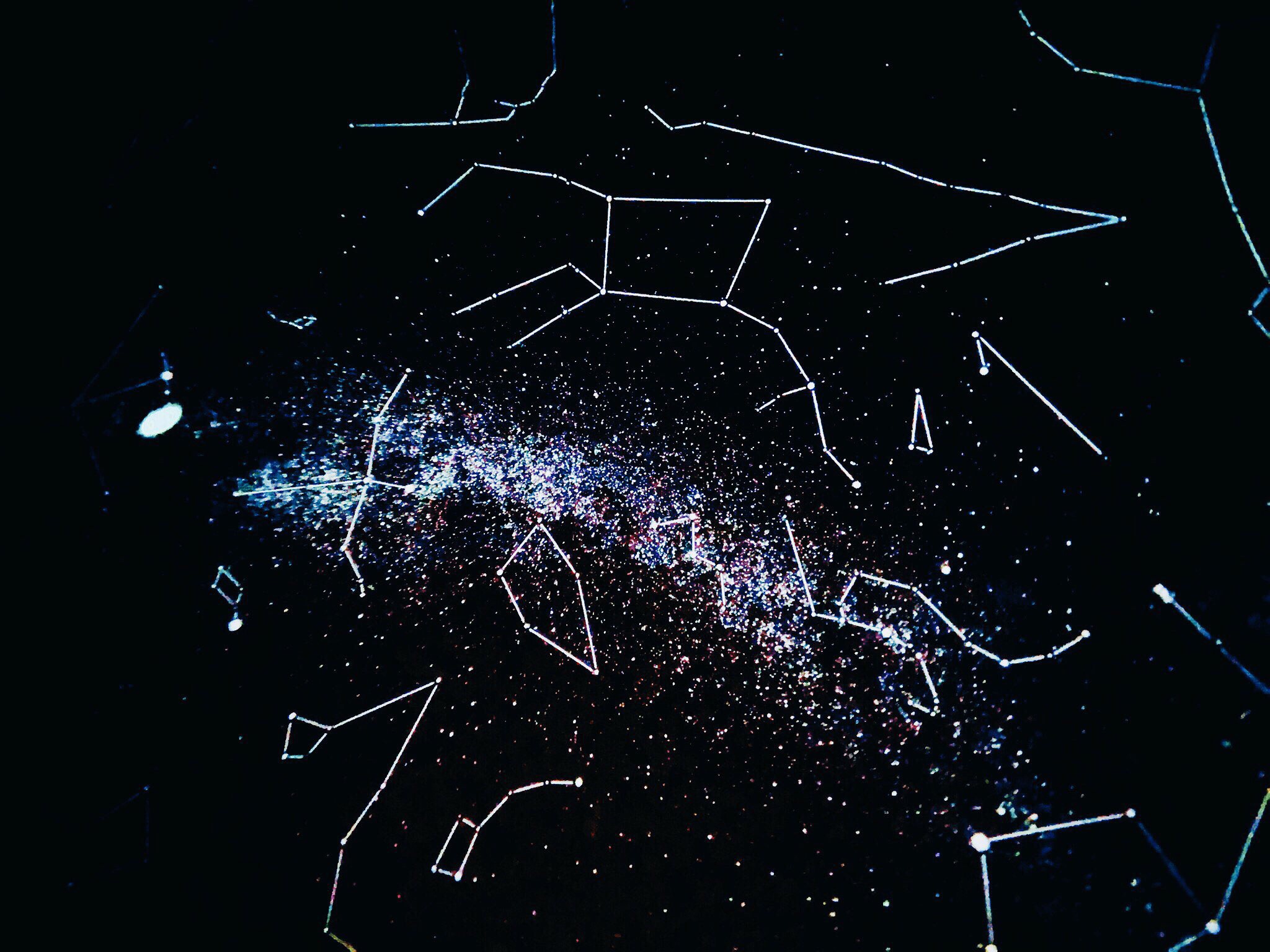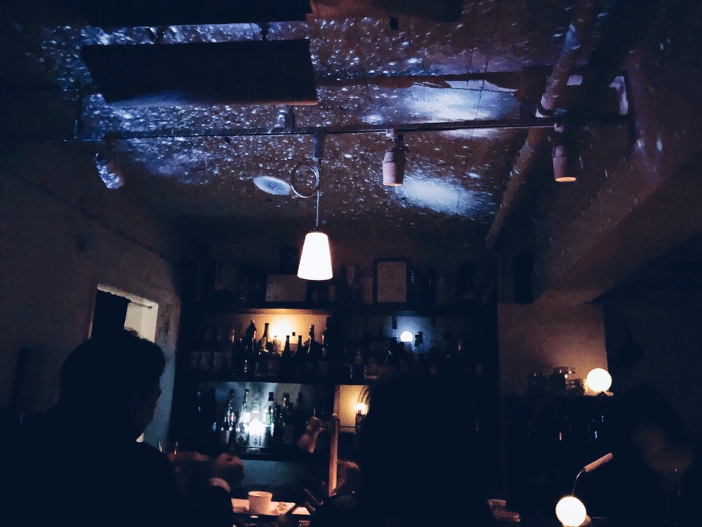 真っ暗な店内には天井や壁一面に壮大なプラネタリウムが投影されていました。最高かよ〜〜
