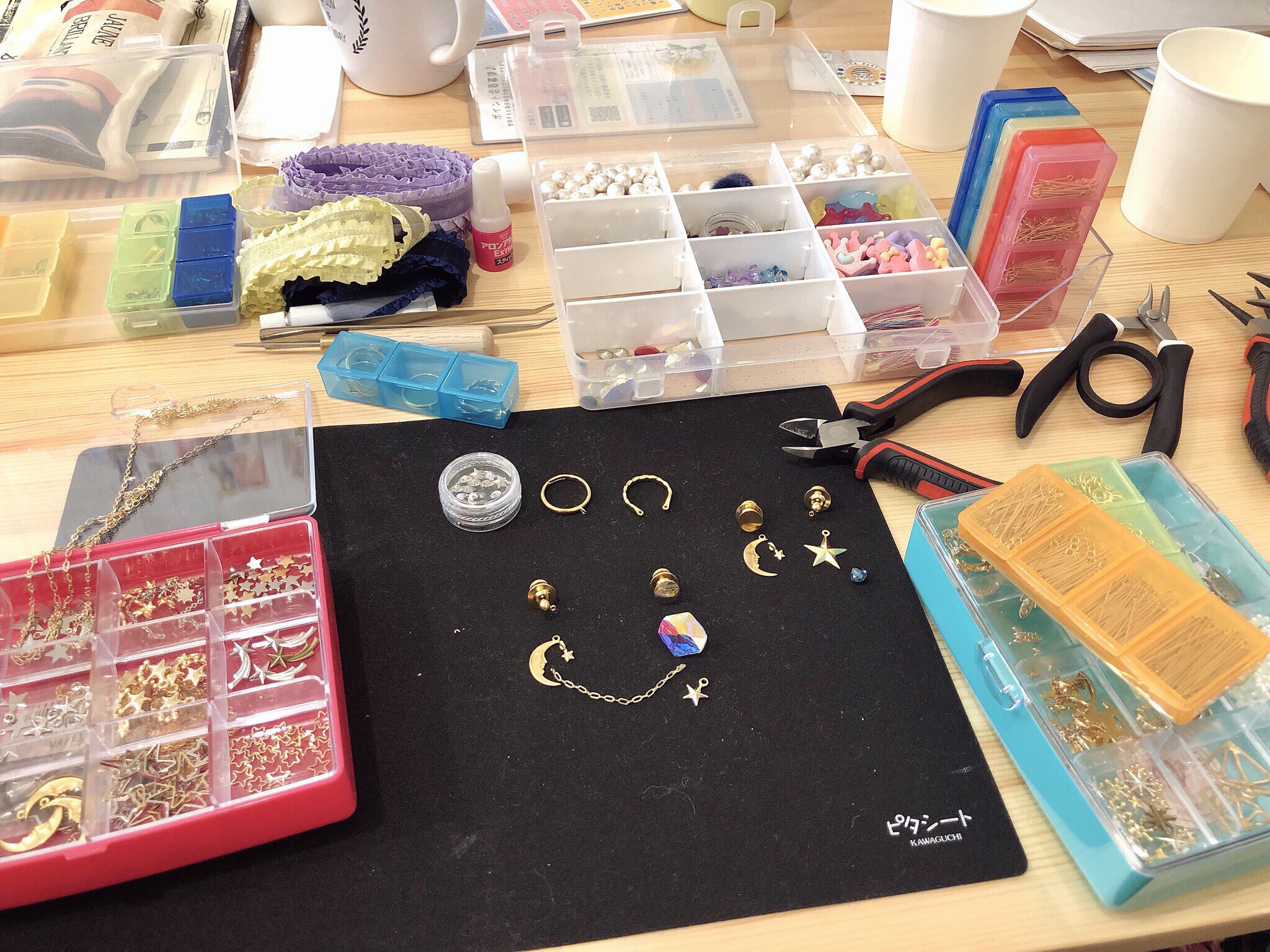 美味しいスイーツをいただきながらまったりゆっくり作業ができました☺️この日は絵ではなくアクセサリーを作りたい気分だったのでパーツなど色々持ち込んで心ゆくまで作りました〜〜!