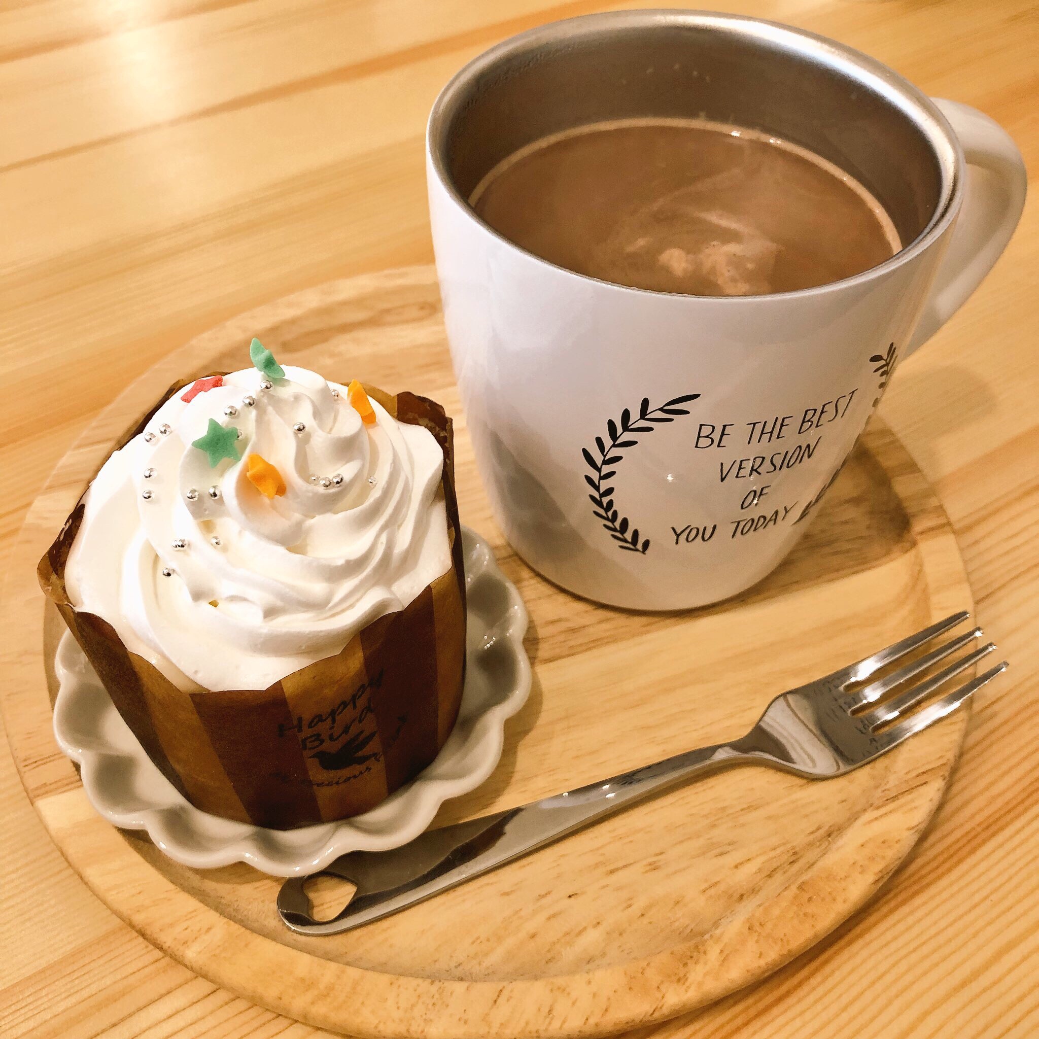 この日はホットココアと塩あんこのカップケーキをいただきました!これがめちゃくちゃ美味しかったです…!