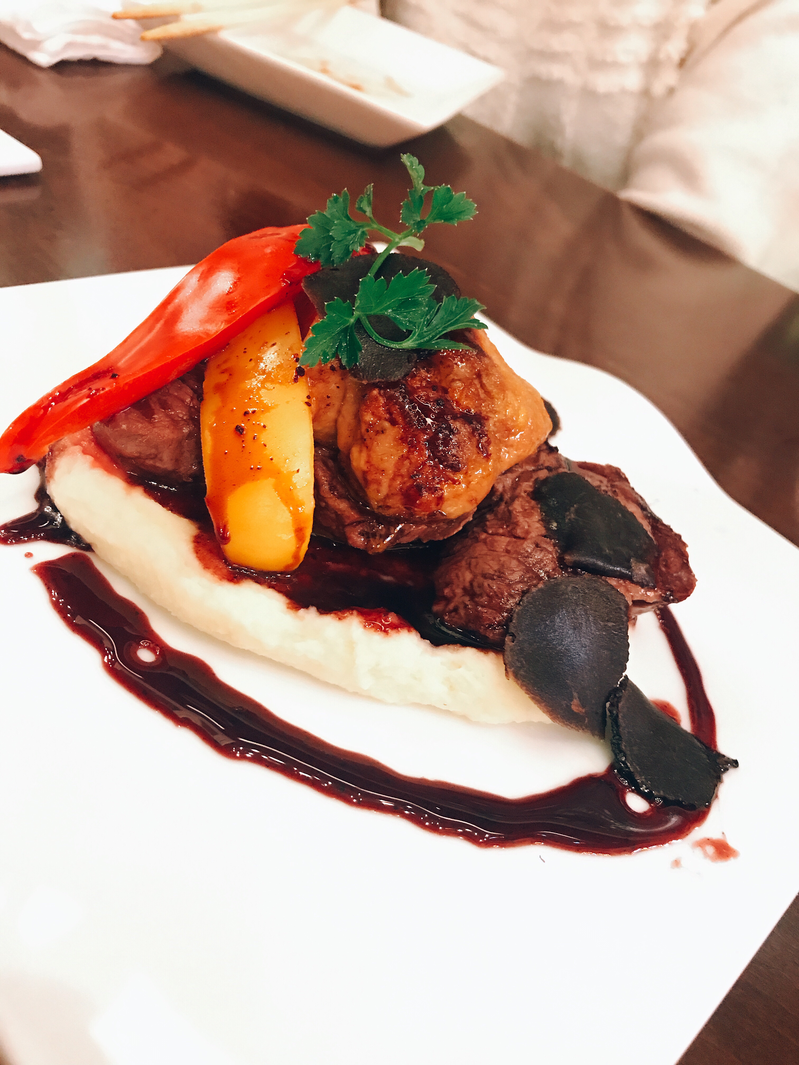 肉の上にフォアグラ、