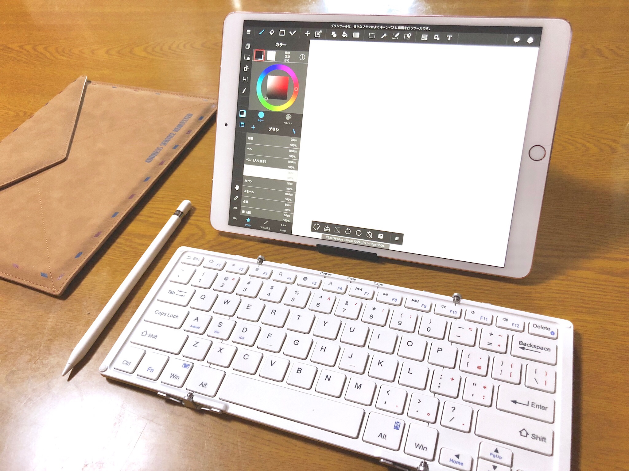 文章を打つことも多いので、サードパーティ製ではありますがBluetoothのキーボードも購入しました。折りたためるタイプを選んだので外出時もカバンに忍ばせてらくらく持っていけます。