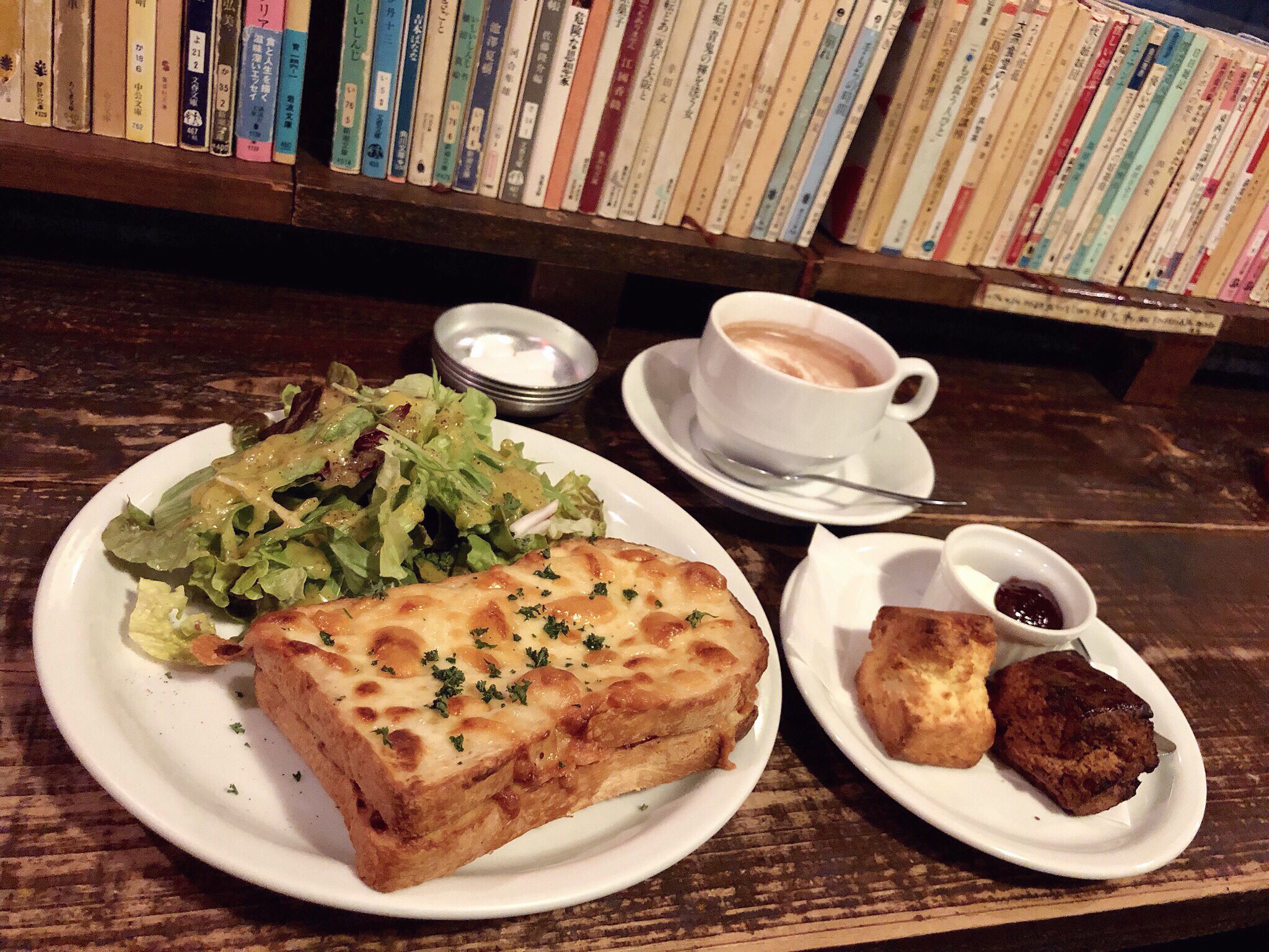 そこら中に古書などの書籍がずらっと並べられていてゆっくりしていってねという気遣いが感じられて…カフェ大好き人間としては有り難い限りです。