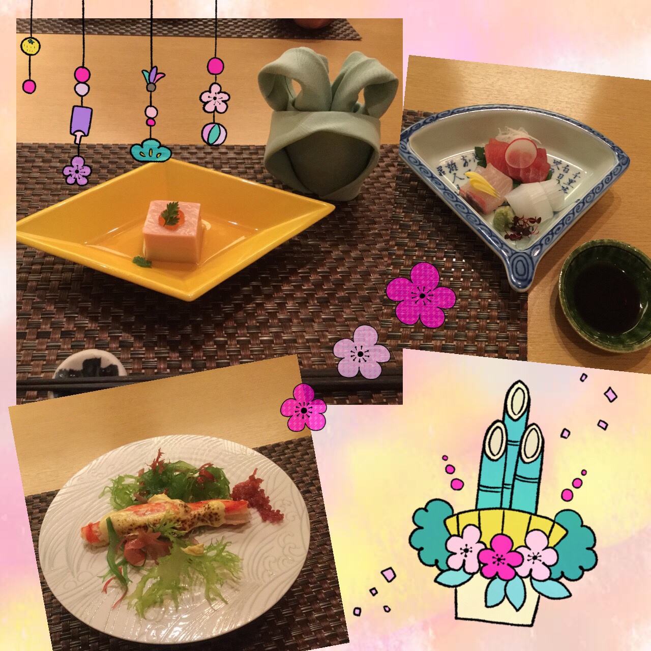 さすがお正月メニュー、お刺身やカニ、おせちによくある黒豆や数の子など豪華でした☆