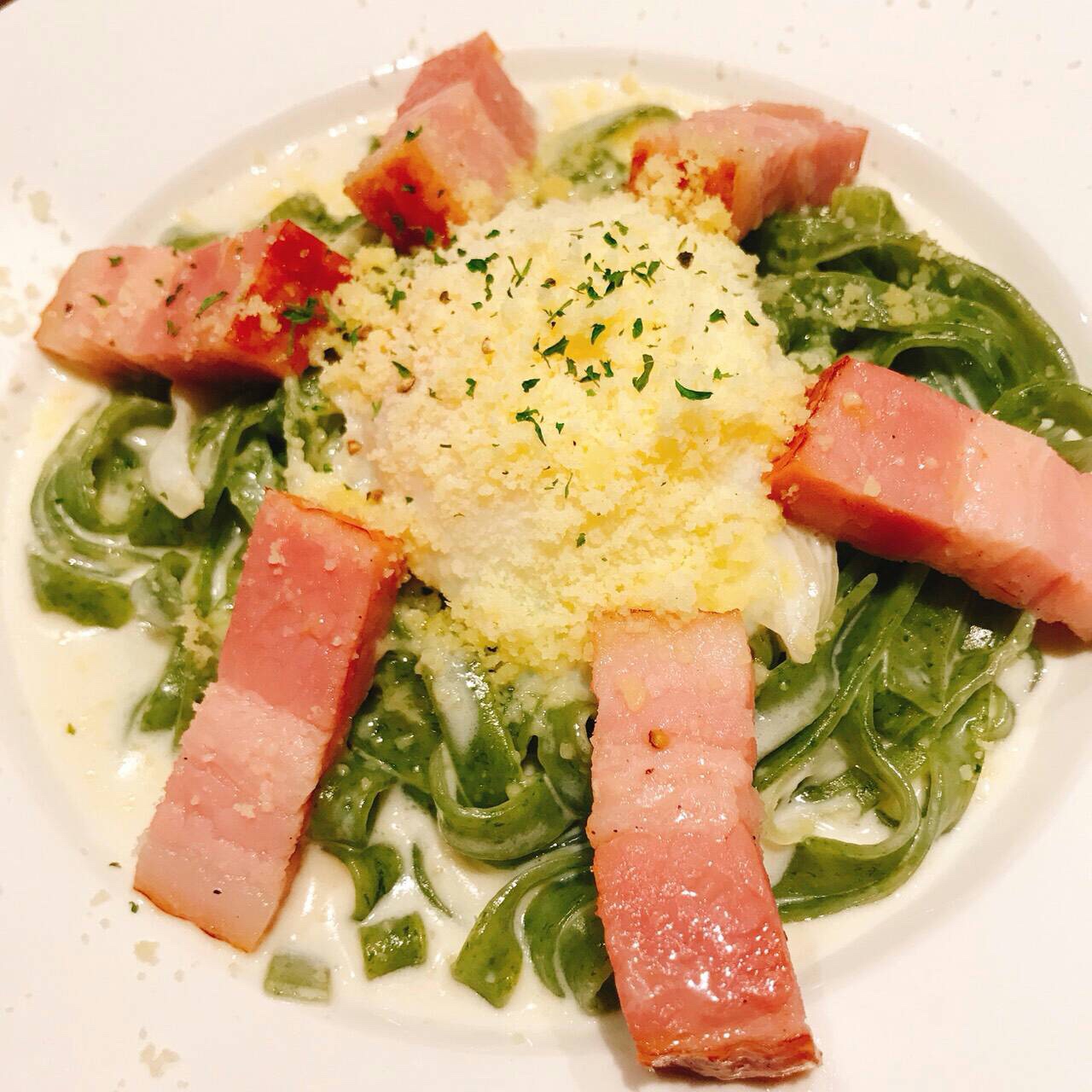 そしてほうれん草のパスタのカルボナーラです✨