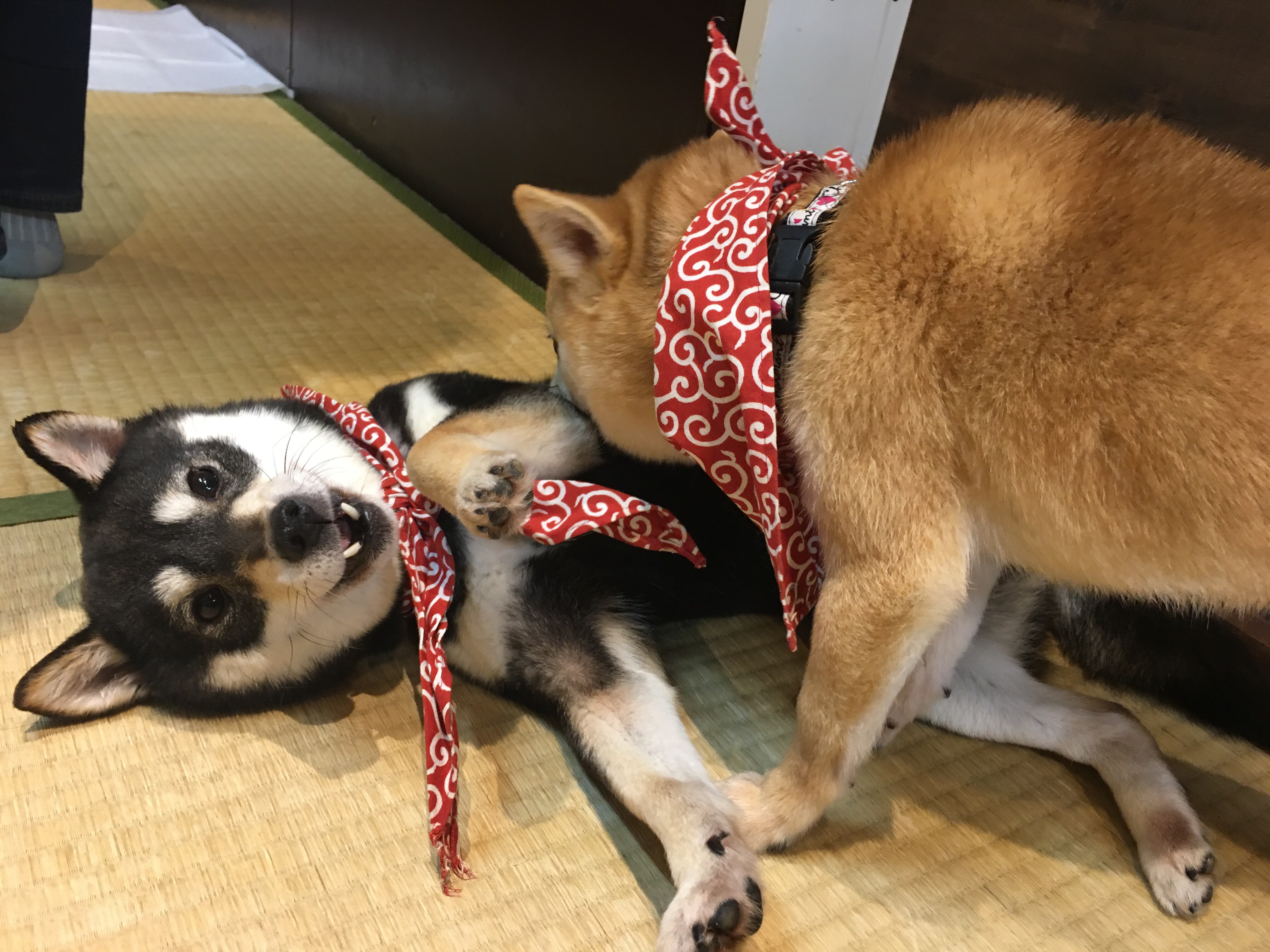 こちらの2匹はとっても仲良しなのか、ずっと茶色の子が黒い子を優しくかみかみしてあげてました。気持ち良いのか、黒い子は最後眠ってました。