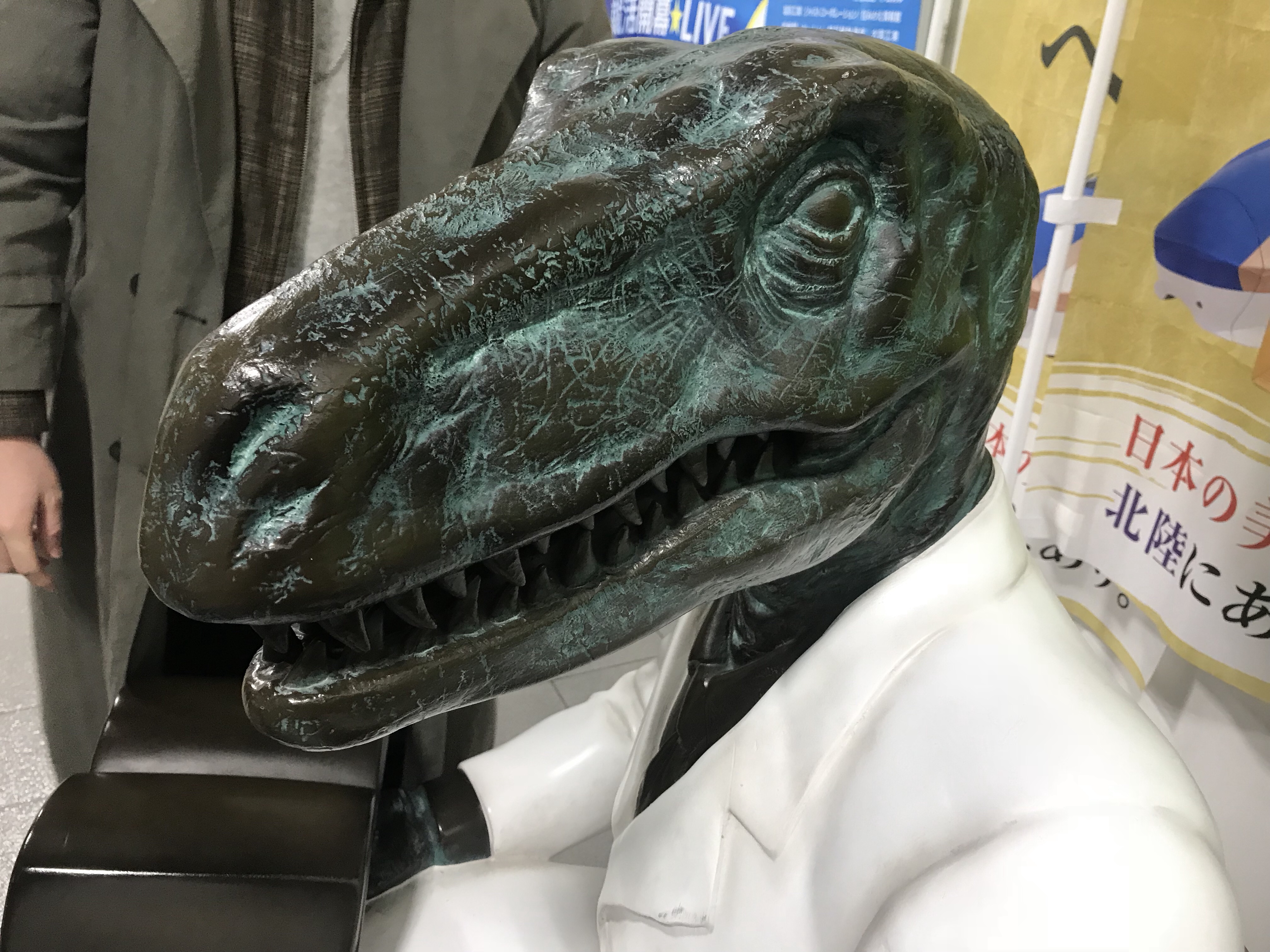 福井駅では恐竜が何匹もベンチに座っていました。恐竜の県なんですね (*´꒳`*)