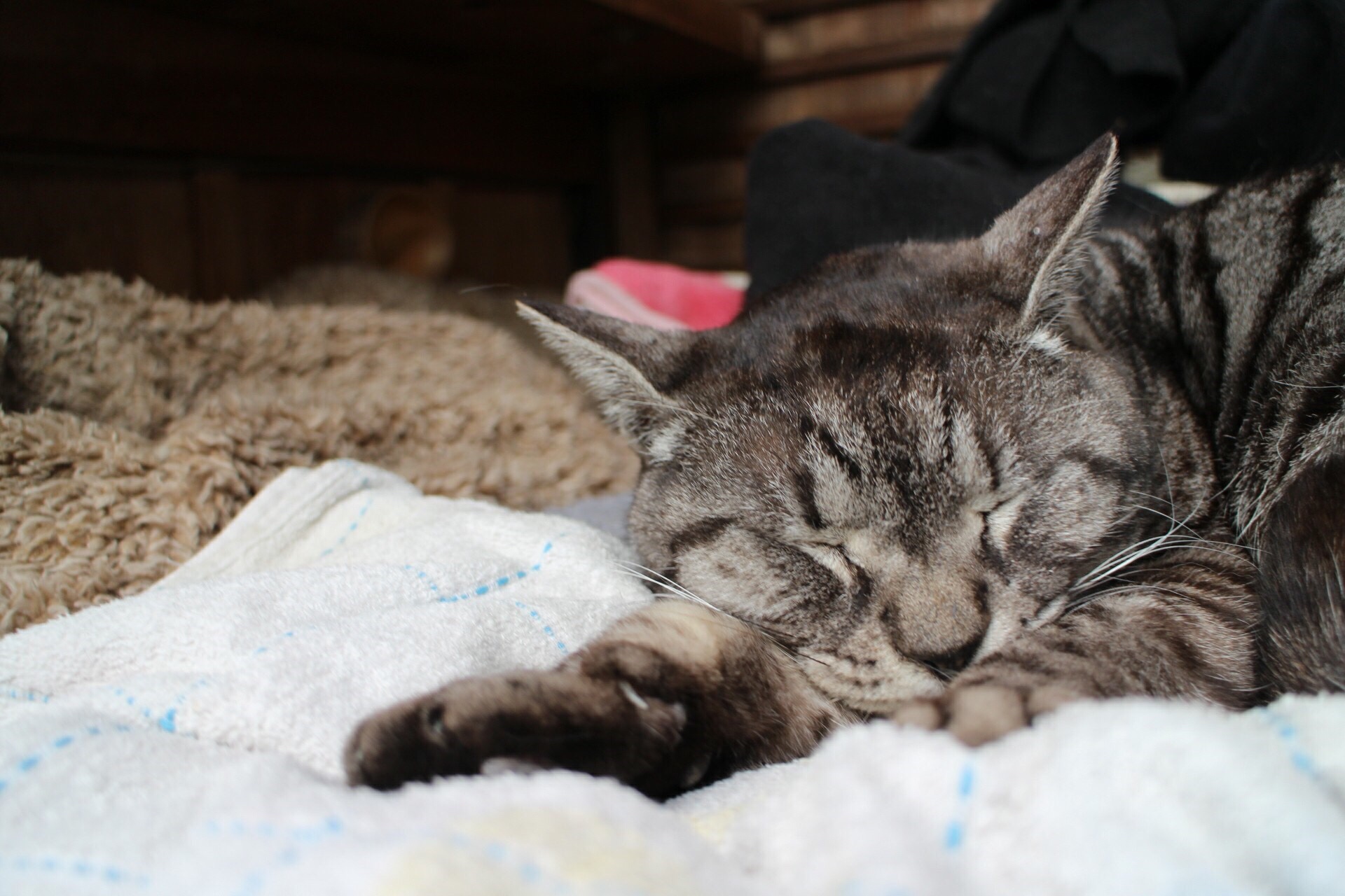 数匹いるようで、のんきに寝ている子もいれば、姿を隠している子もいました。