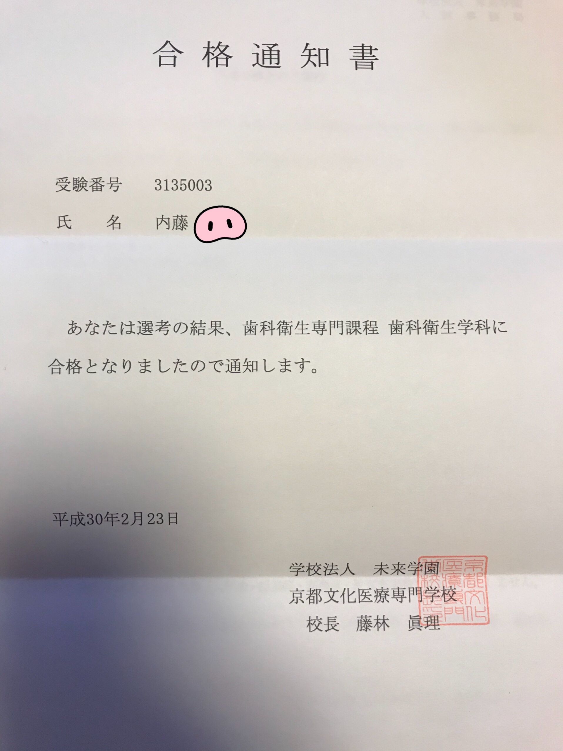 歯科衛生士の学校に合格しました。