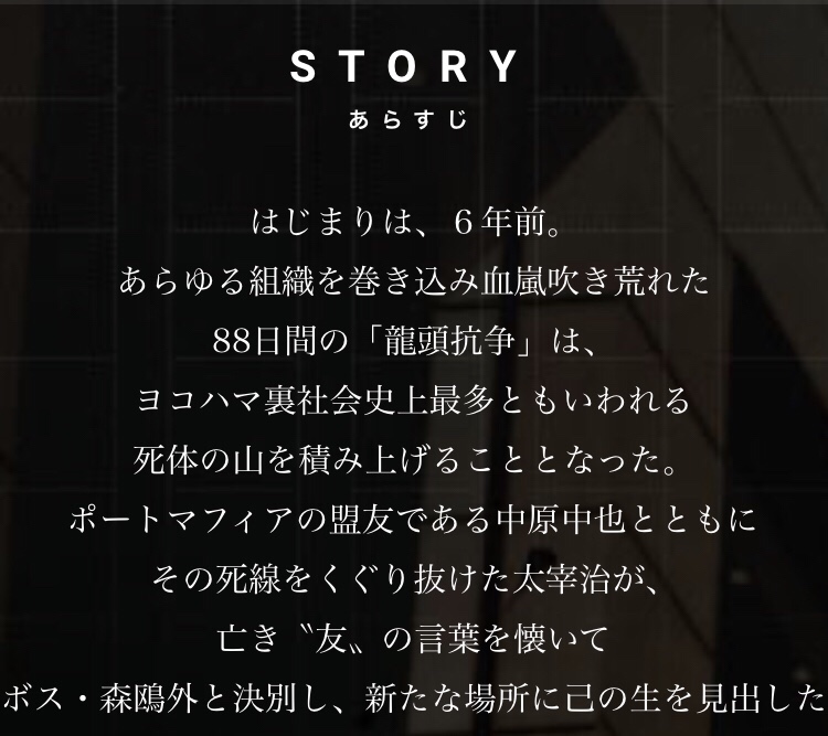 先日、母の付き添いで『文豪ストレイドッグス』という作品の映画を観てきました!!