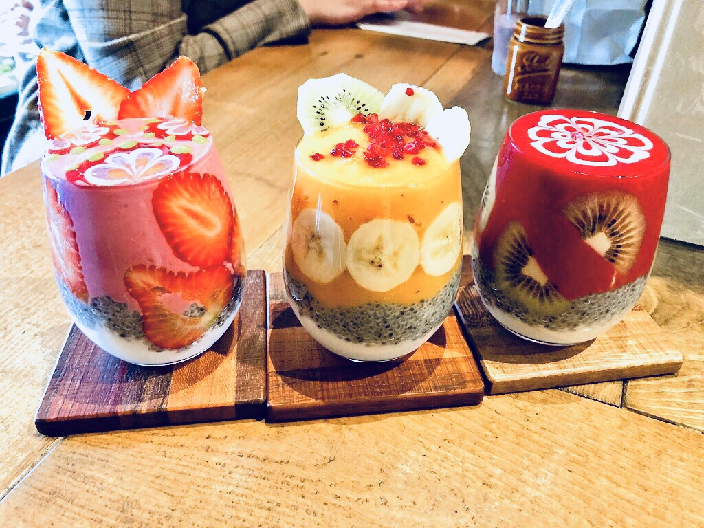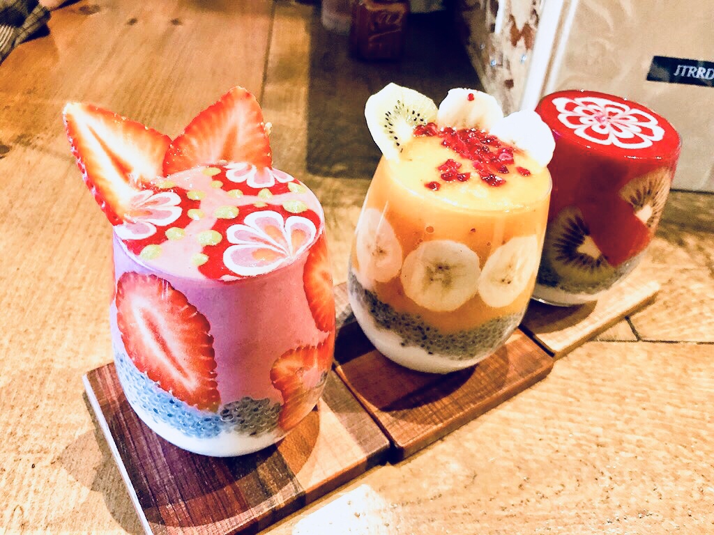 こちらのカフェ、何がそんなに有名なのかというと、まるで芸術作品のように美しいスムージーが楽しめるからなんです!!!!!!