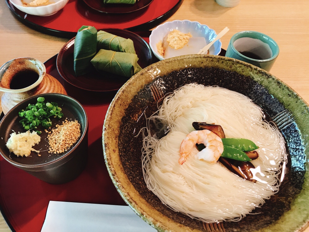 そうめんのほか、柿の葉寿司とくず餅が食べられました。