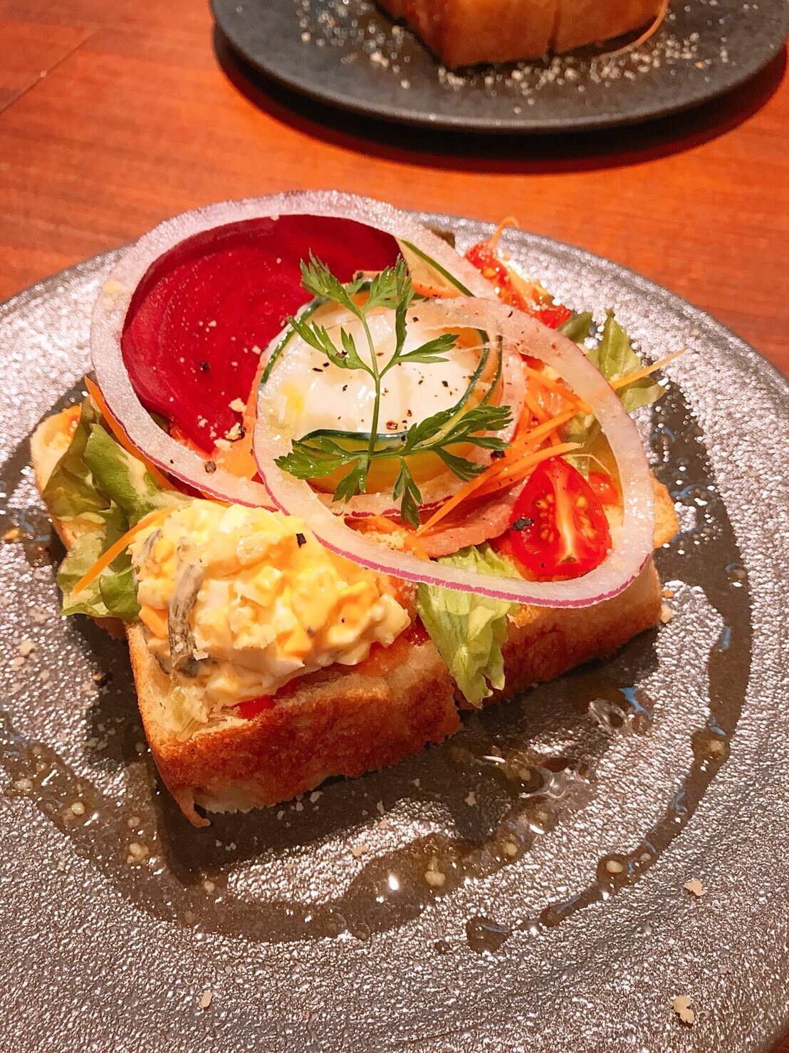 こちらのオープンサンドは、パンがもちもちで具沢山でとても絶品でした!温泉たまごがとろけてマッチしていました✨私も休みの日にこんな美味しい朝食がつくれる女性になりたいなと密かに思いました~