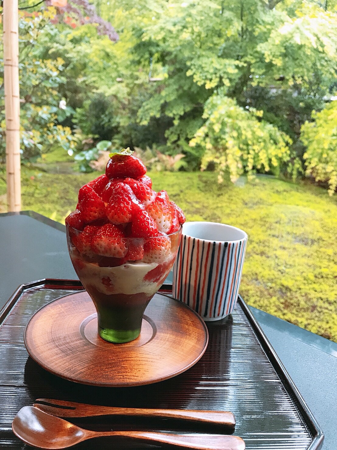 このいちごパフェは、濃厚ミルクのアイスとあまおう100%のソルベといちごのコンフィチュールが中に入っていました!見た目だけでなく中身も工夫されていてさすが菊乃井さんのお店だなという感じでした!