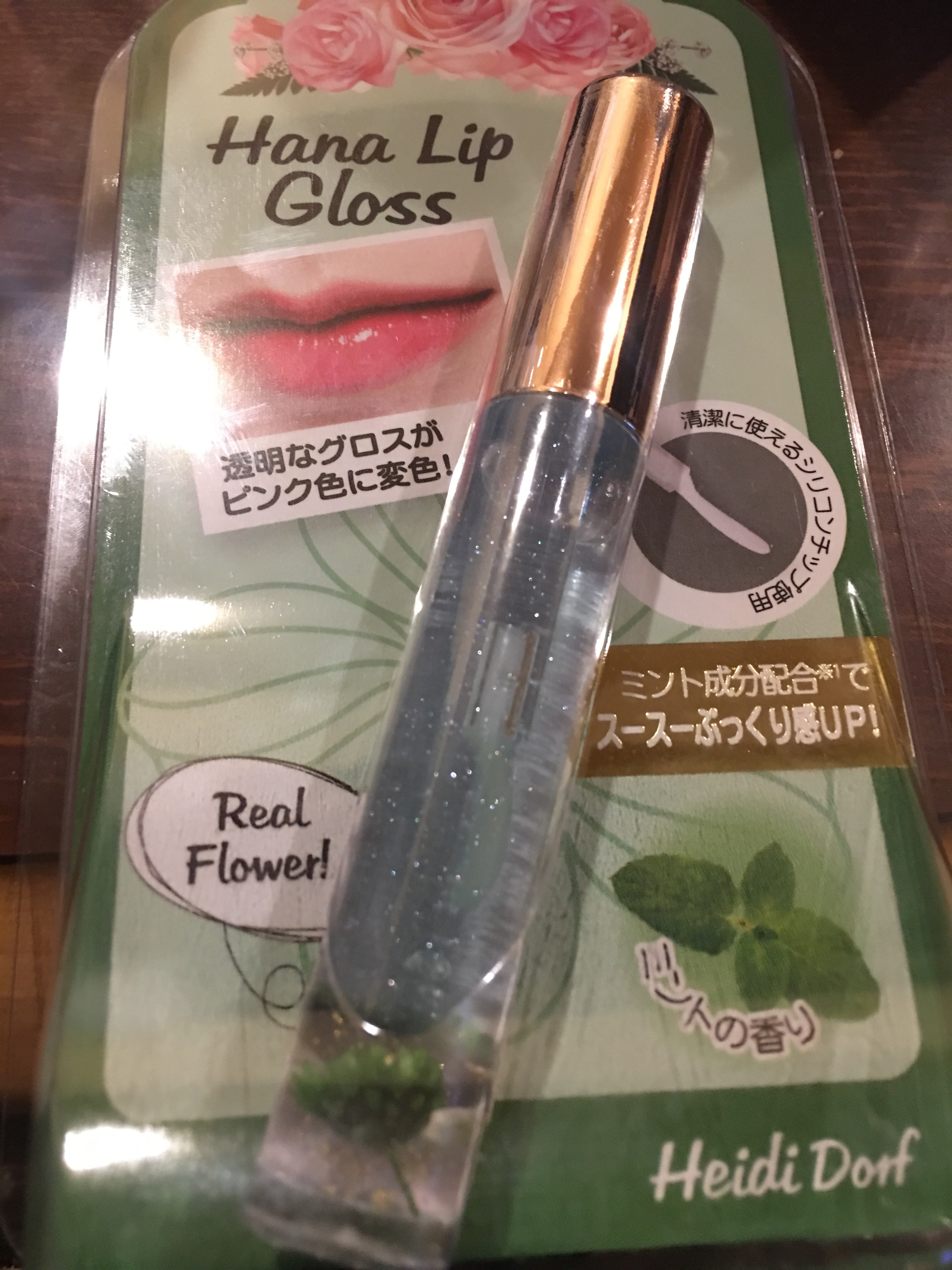 ミントの香りのリップグロスです。もちろんプチプラです。