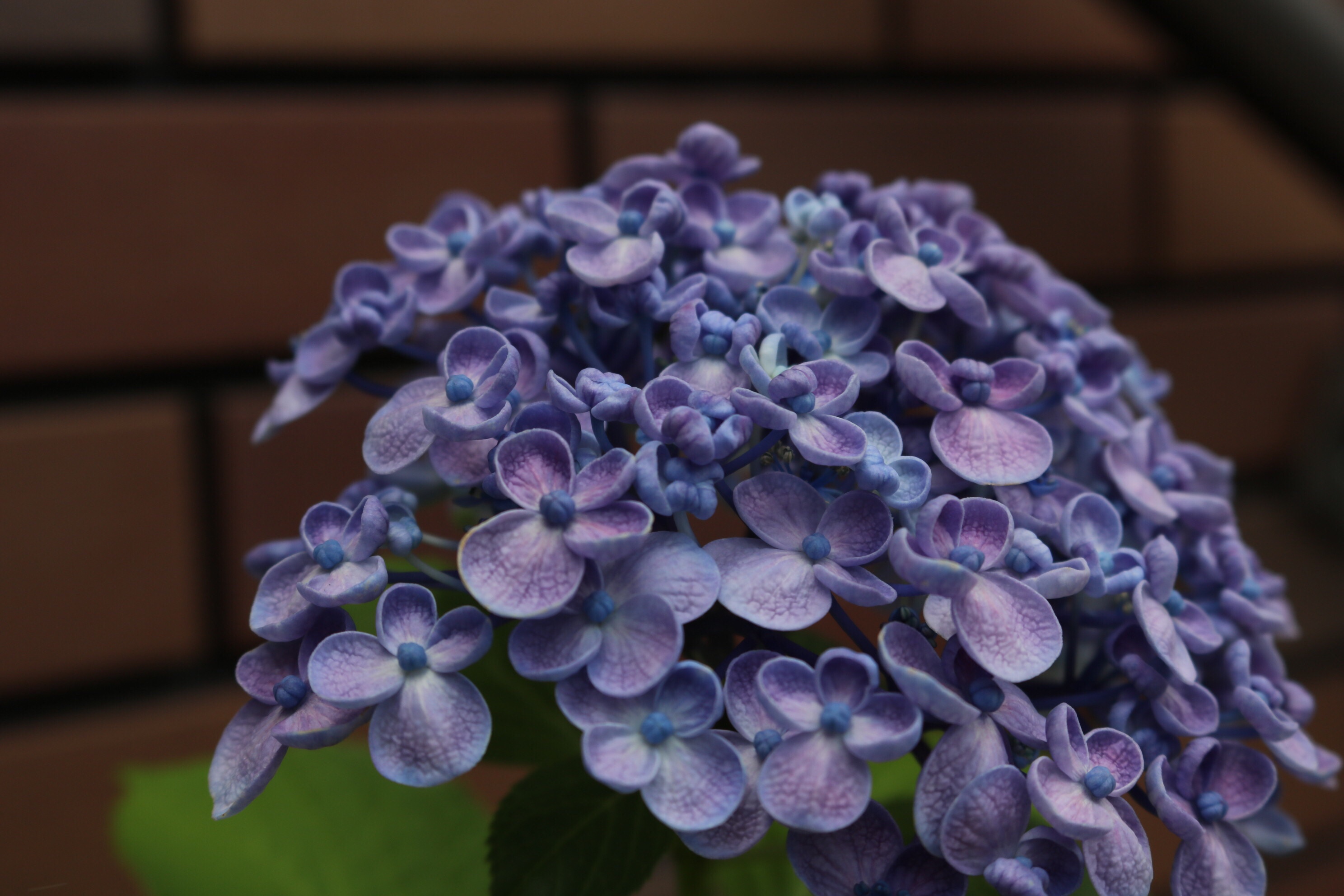 友人宅の紫陽花を撮らせてもらったのですが、濃いめの紫色で丸い形と少しカールした形状で可愛かったです。