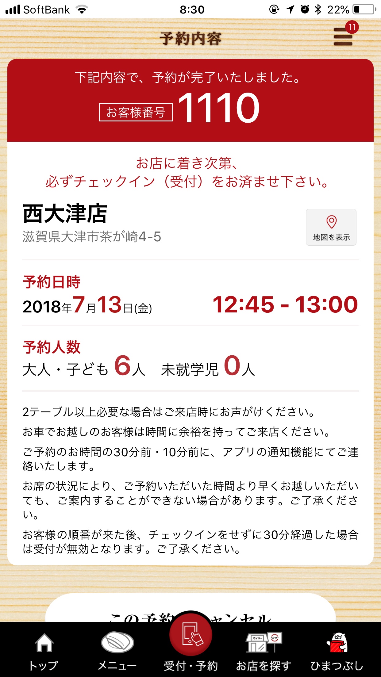 朝出勤してから「スシロー行く人〜??」っと募集を募り、人数確認してスマホアプリから予約しました!