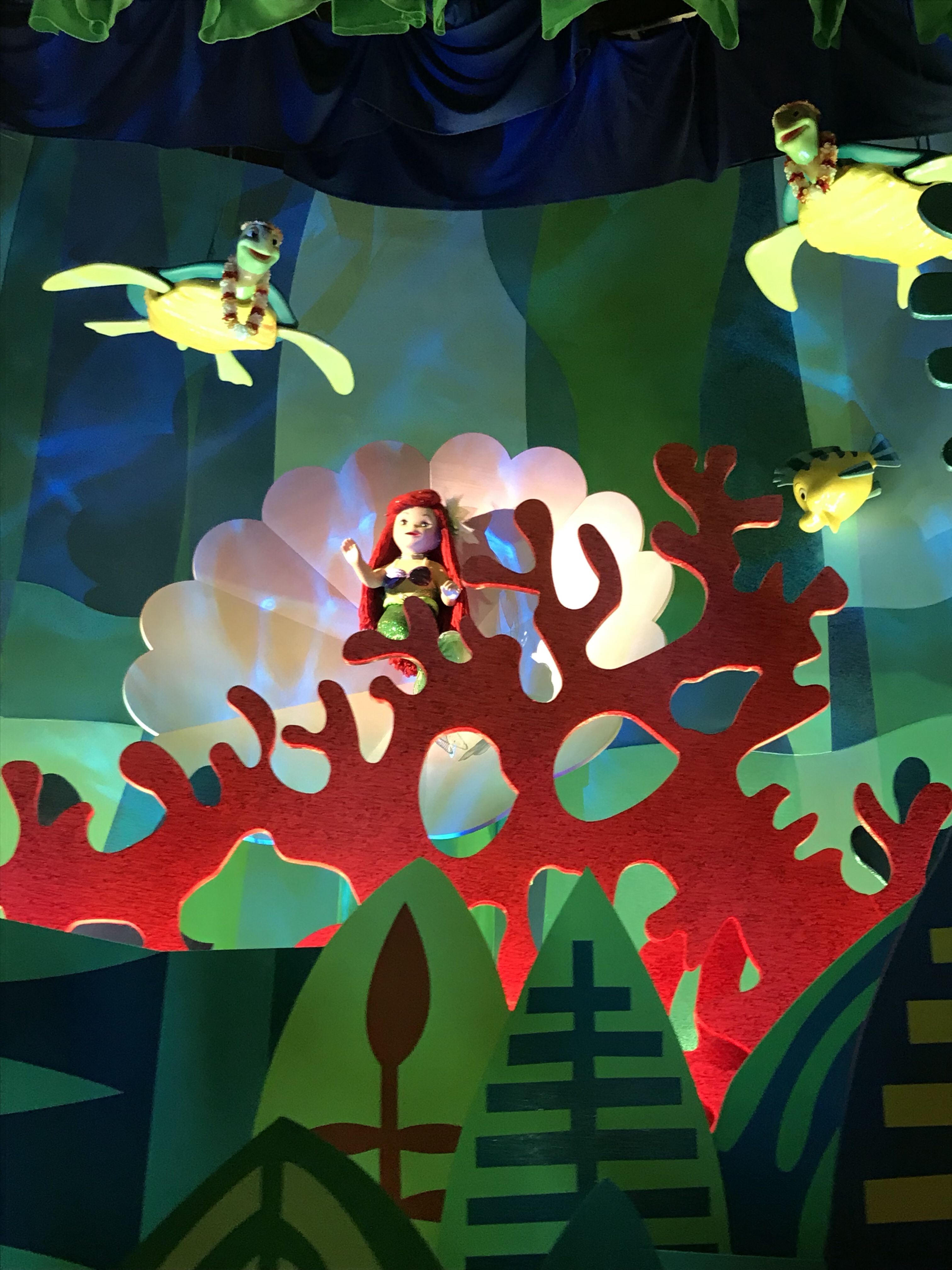 プリンセスが沢山いてめっちゃテンション上がりました!キャラクターに近づいていくとそれぞれの映画のテーマ曲が流れているみたいなのですが、耳悪すぎて耳を最大限に澄ませて聞いても小さな世界しか私には聞こえませんでした(涙)