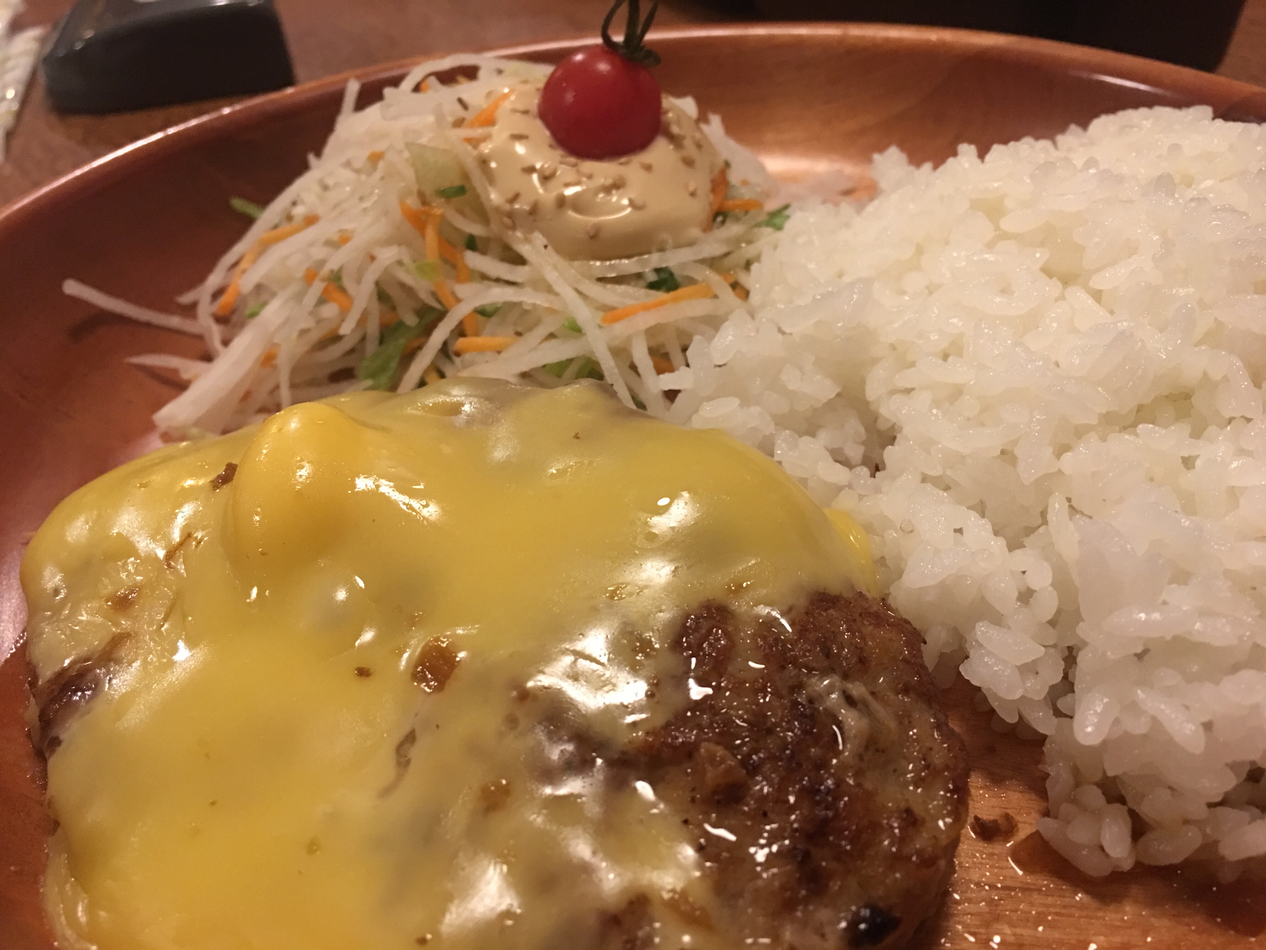 チーズのハンバーグです。ほぼこれしか頼まないです!!