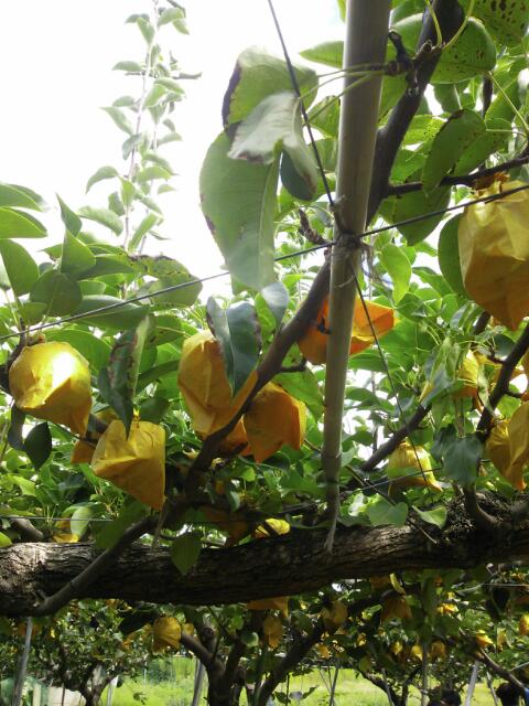 梨園の梨は、一つ一つ袋に入って大事に