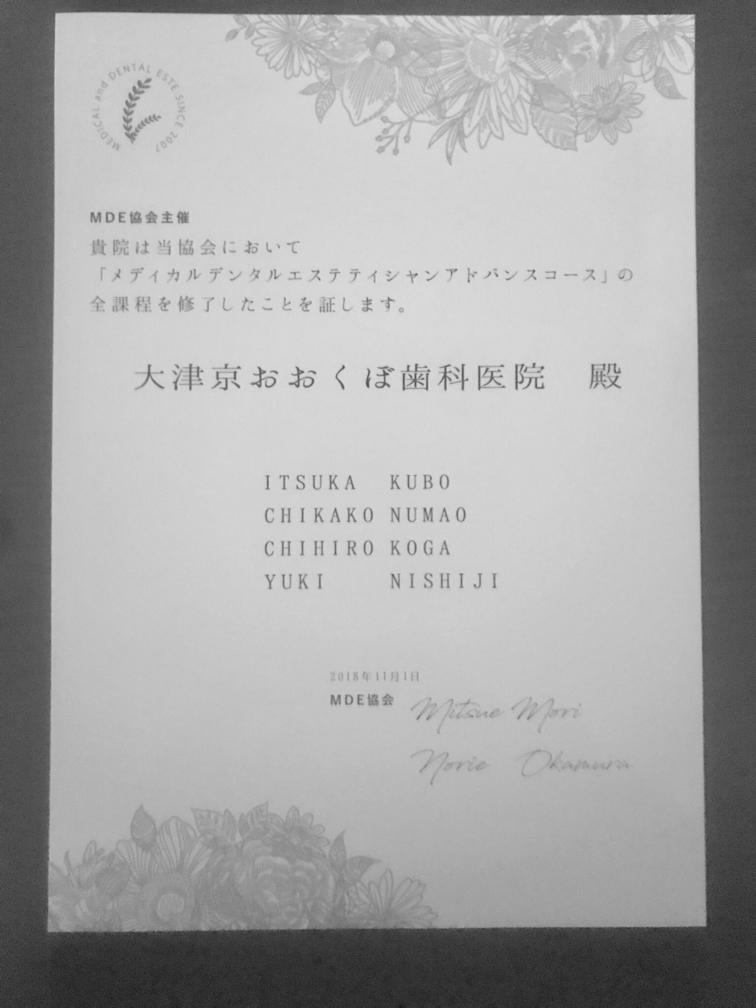 今月、医院にデンタルエステの講師の先生(MDE協会の副会長)をお招きして、デンタルエステのセミナーを行っていただきました!以前からデンタルエステに興味があったので、とても勉強になりました!