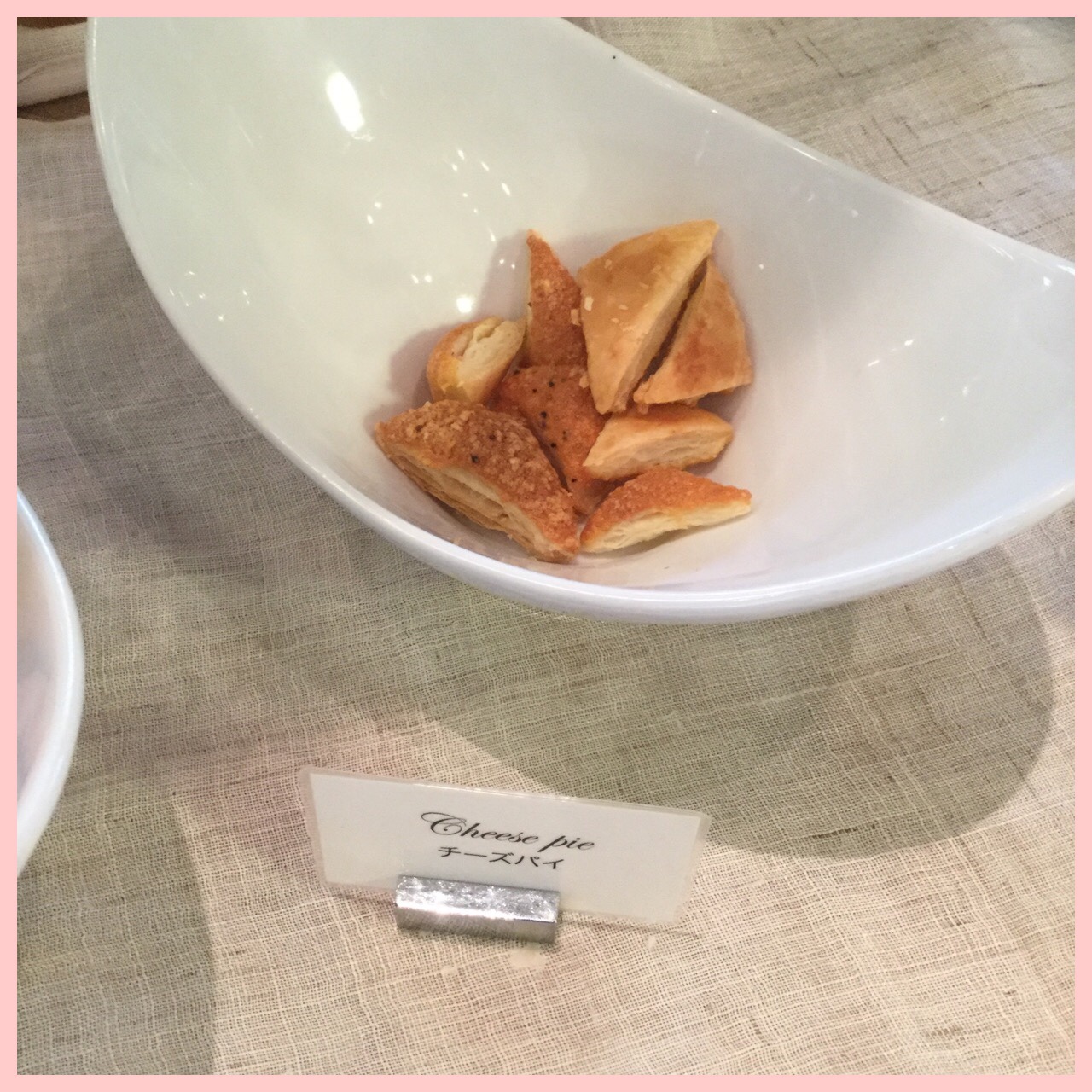 中盤になると、おかず系の甘くないピザやキッシュが運ばれてきました。