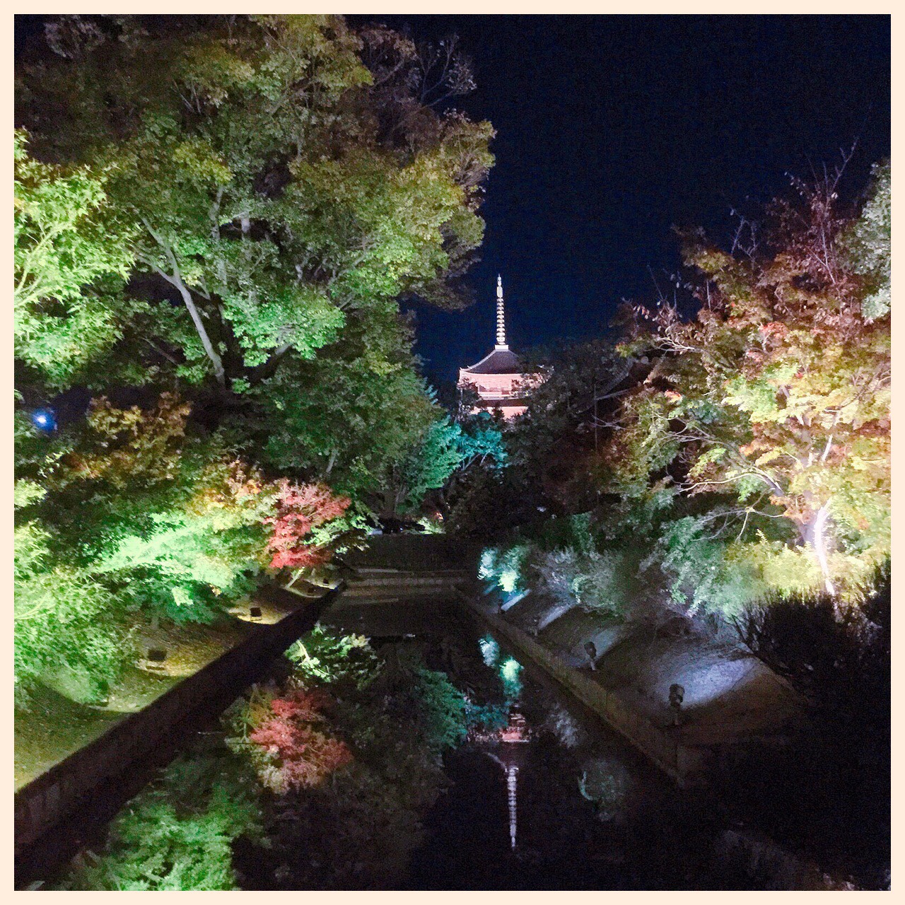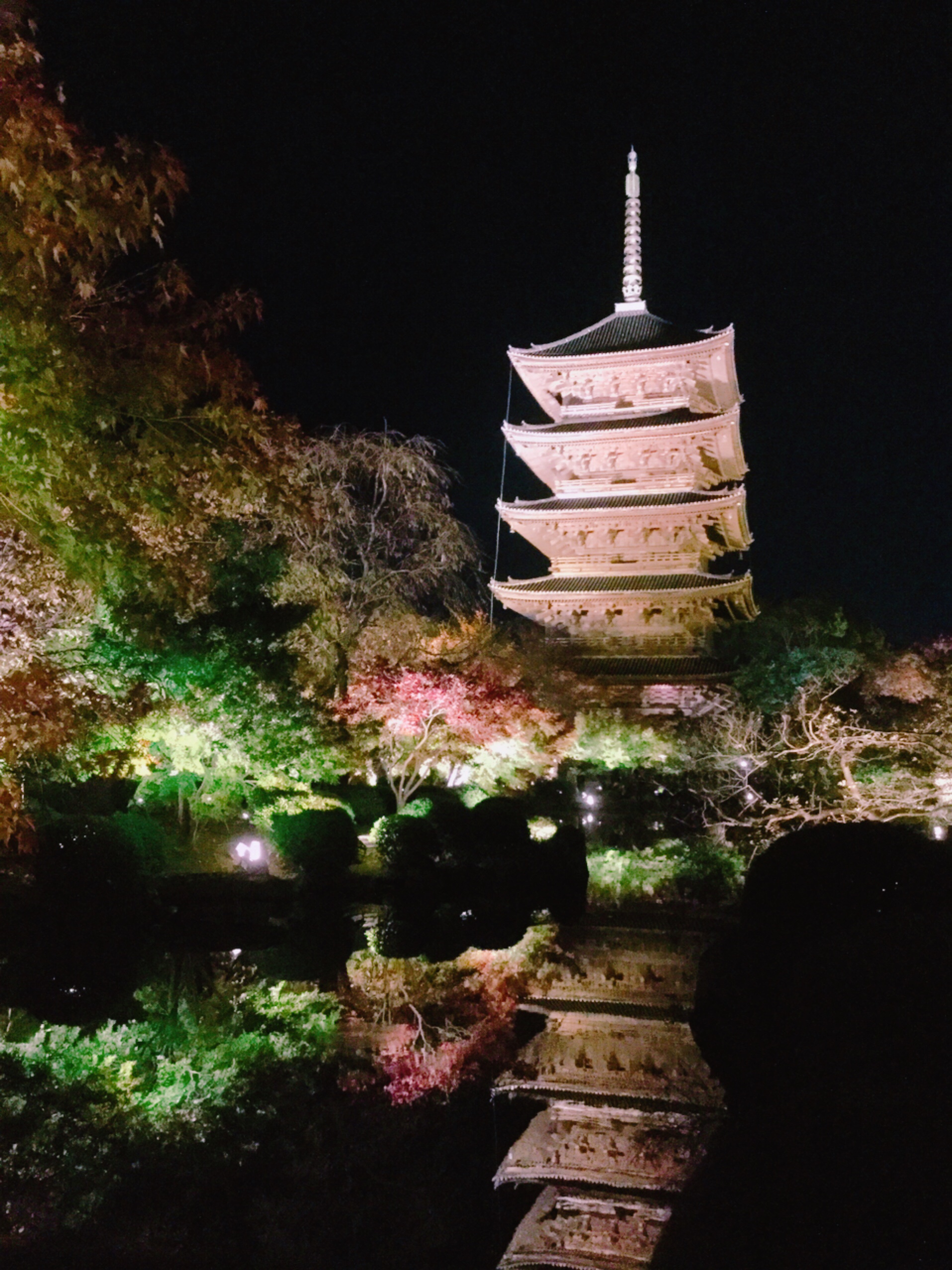 夜の紅葉を見たのは初めてだったので、びっくりしたのが、水面に映ったもみじたち!