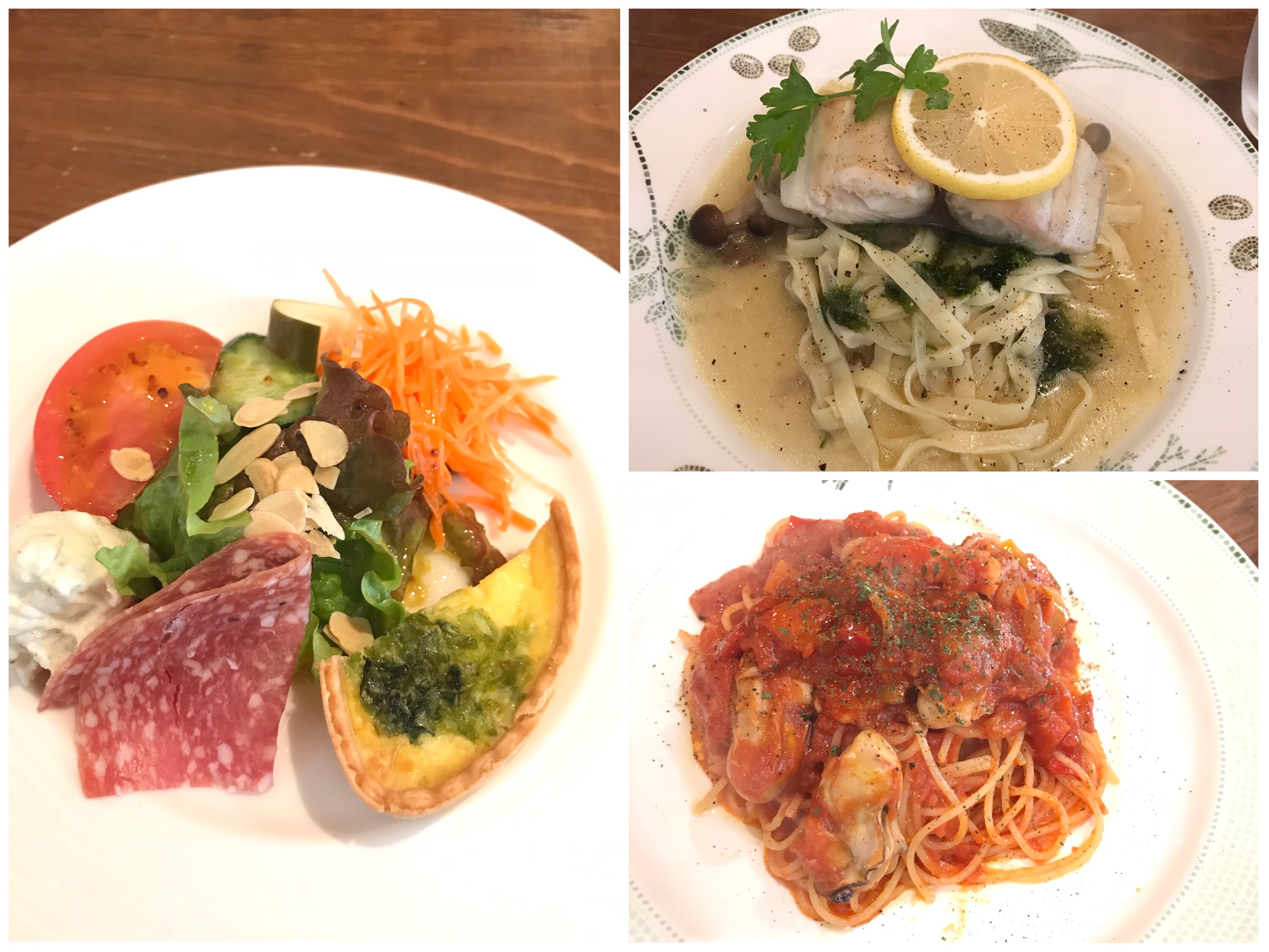 パスタランチで地元食材を使った牡蠣のトマトソースのパスタとサワラのオイルパスタを注文しました。