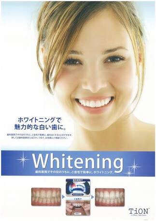 ホワイトニングには、医院で行うオフィスホワイトニングと患者さんに自宅で行ってもらうホームホワイトニングがあります。当院では、ホームホワイトニングをしています。使用しているホワイトニングジェルは、ティオンホームプラチナというものです。