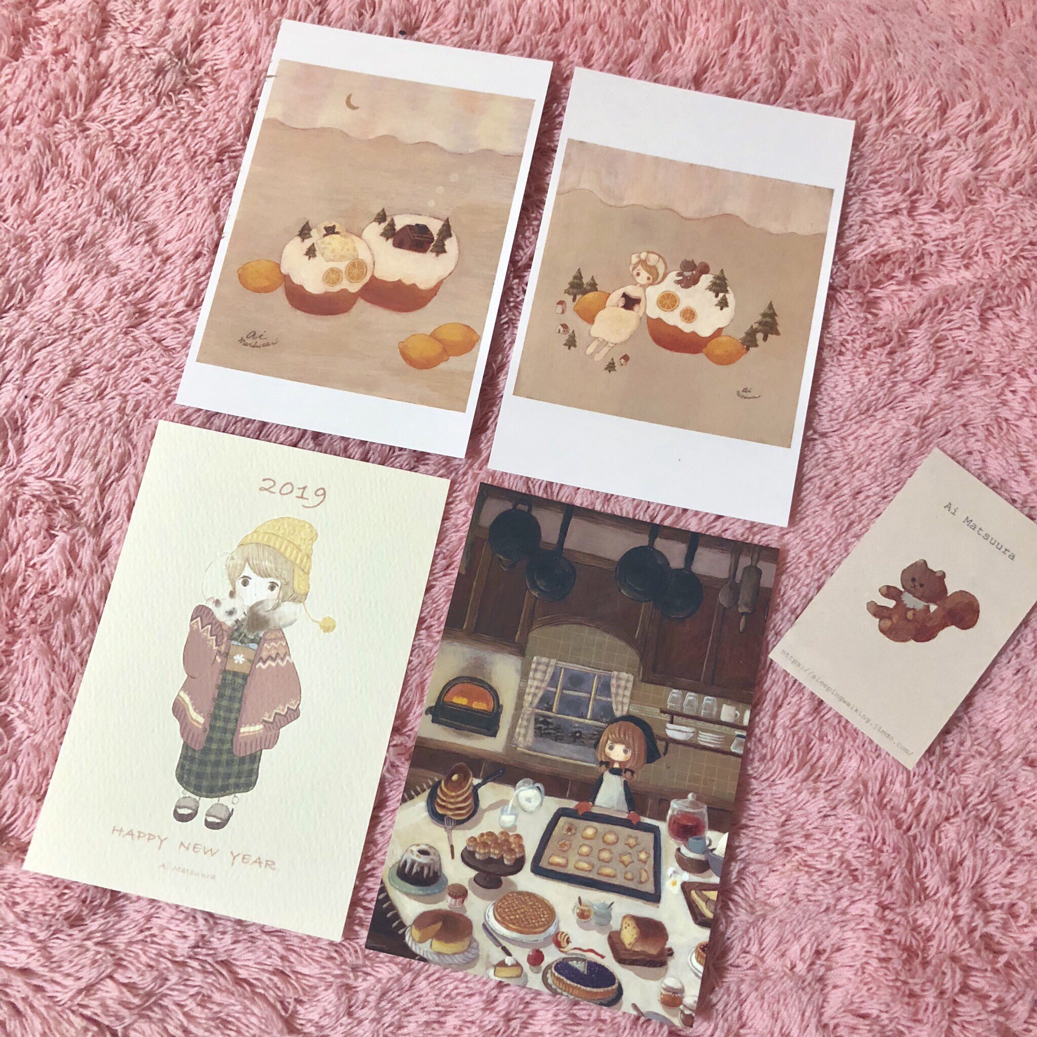 やわらかい色合いに筆の跡がのこるタッチと、やさしい作風に惹かれてポストカードを数点買いましいた😊かわいいです🥖🥖🥖
