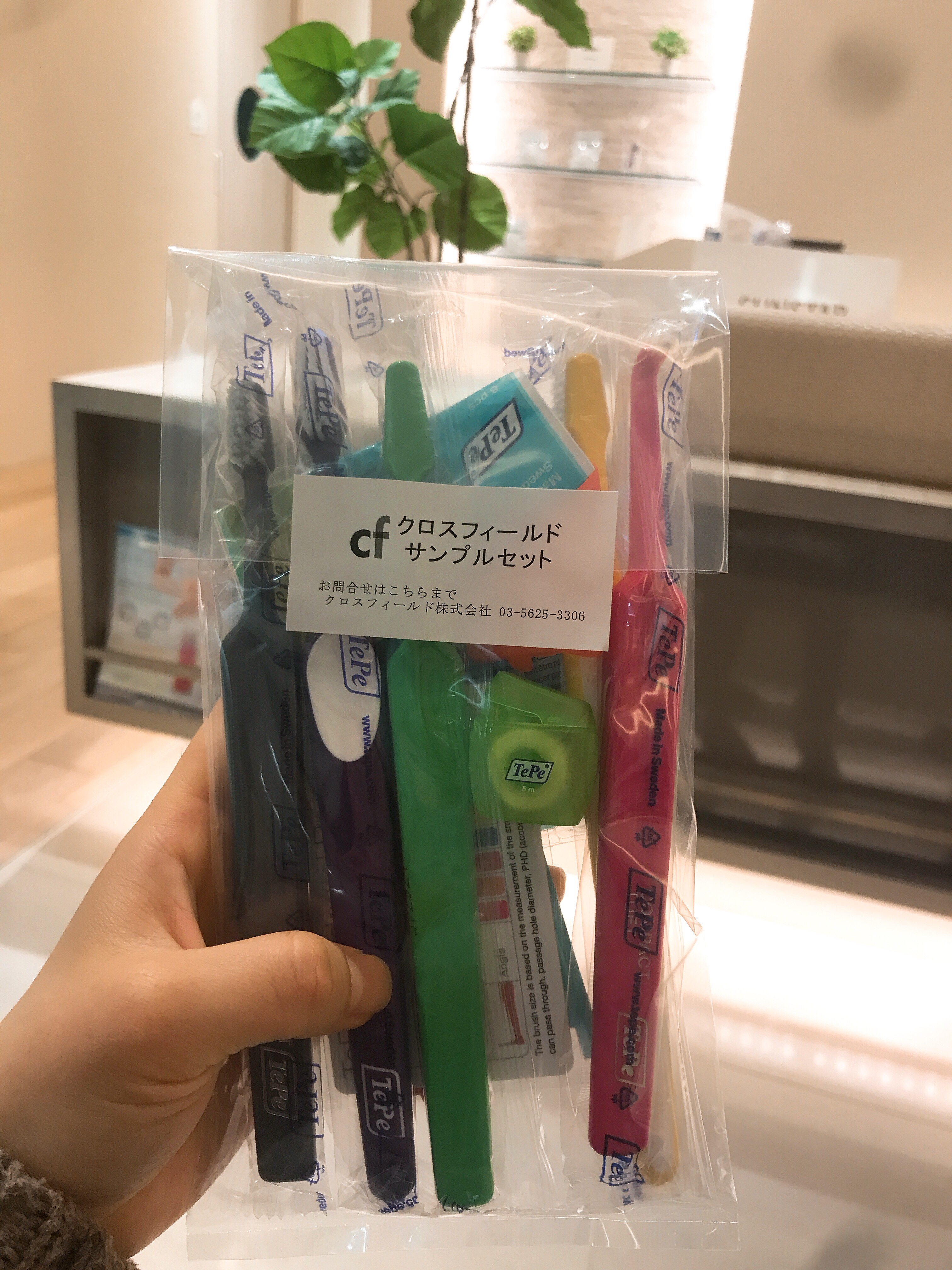 特にTePeという予防歯科先進国のスウェーデン発の歯ブラシは使ってみたいなと思ってたので嬉しかったです♪早速帰って使いました。ヘッドの部分は大きいですが、先細りなので磨きやすかったです🙆♀️歯ブラシの毛が柔らかくて気持ちいい磨き心地でした👍