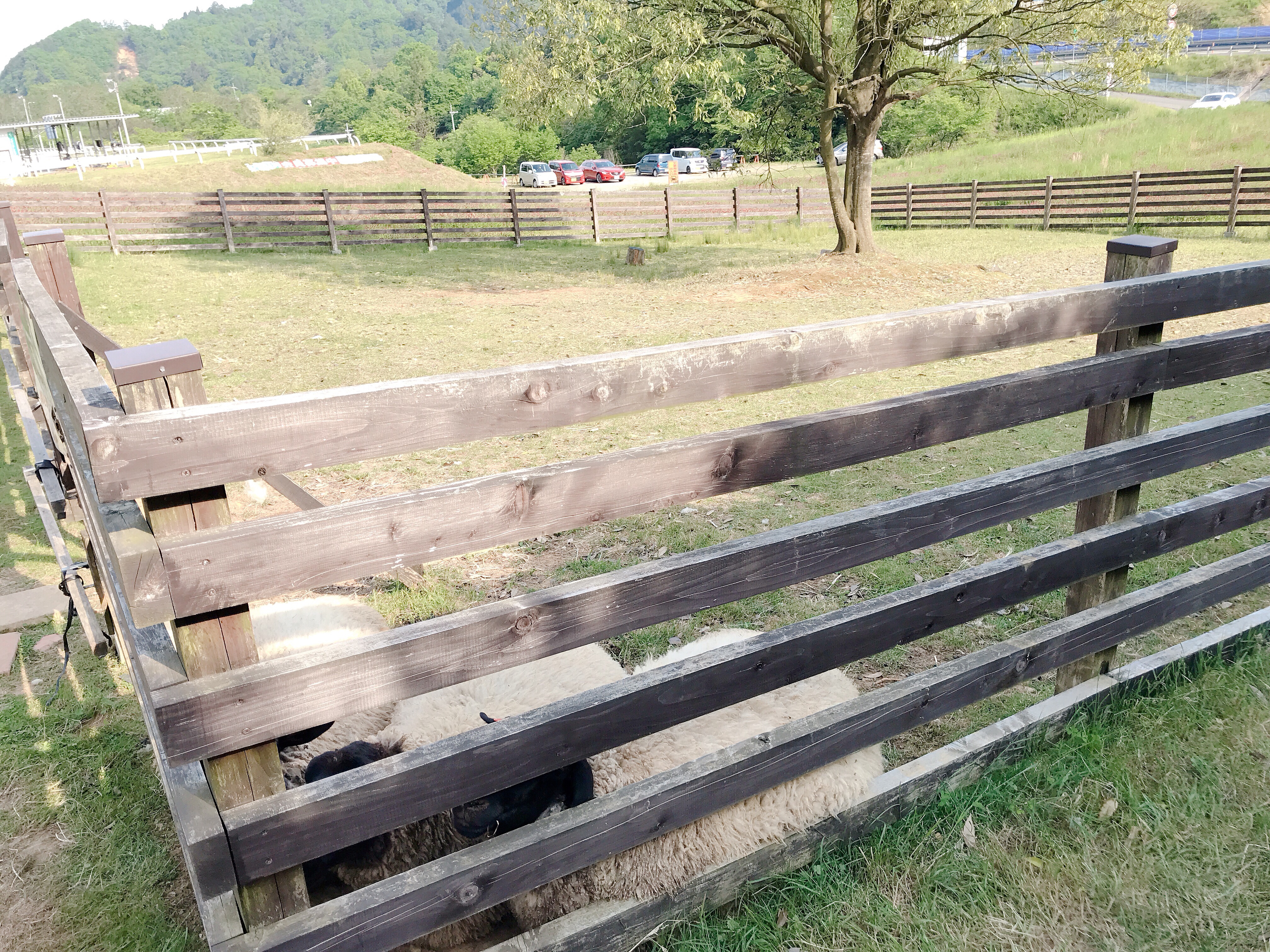 こんなに広い敷地があるのにめちゃめちゃ隅にせせこましく集まっている羊さん達w
