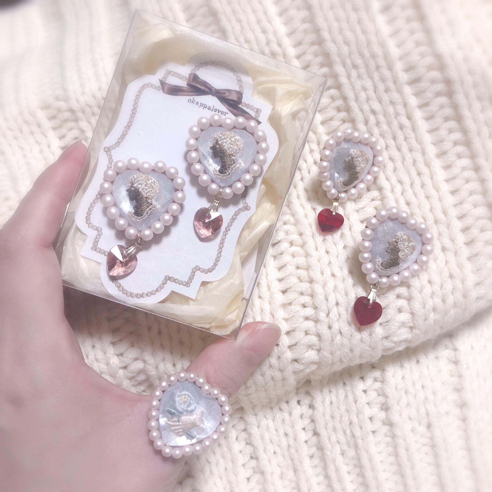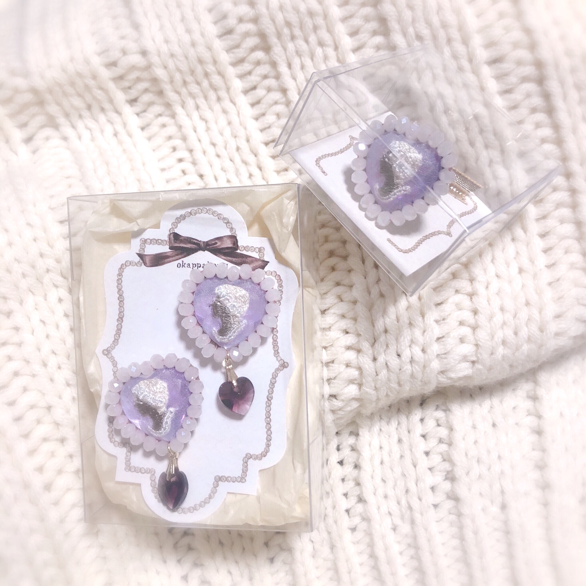 写真の右側にあるのは元々持っていたイヤリングなのですが(人気作家さんなのですぐ完売してしまい、ピアスが購入できなかった)、数時間で耳が痛くなってしまうので同シリーズのピアスverを購入しました!かわいい!!!!!!!