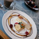 りんごのレアチーズケーキとショコラ―タを頂きましたheart
