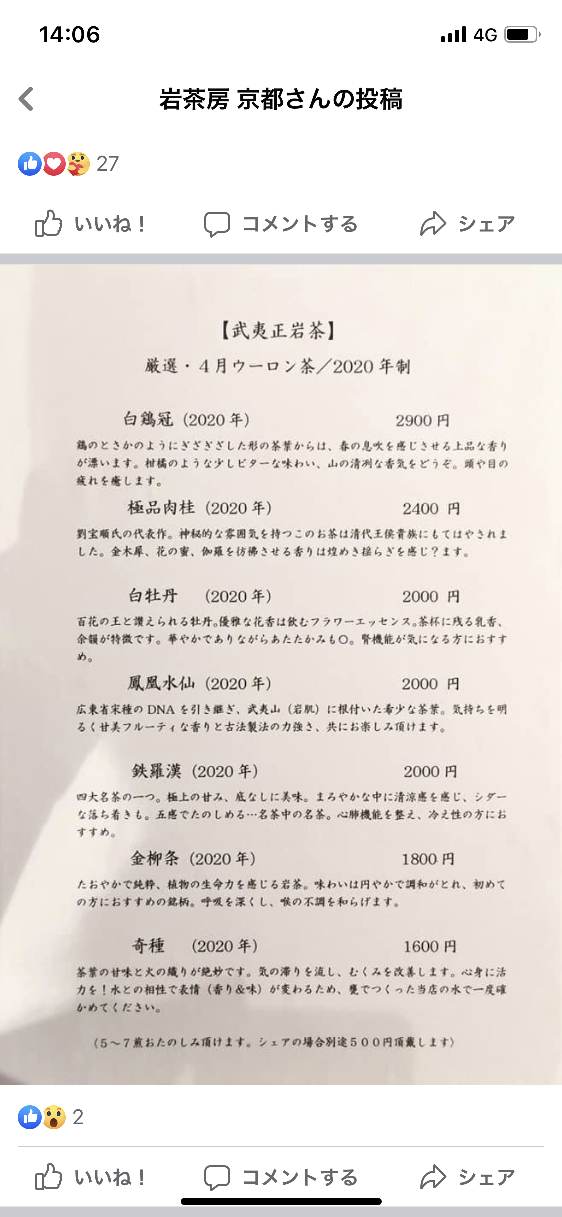 季節などに合わせて飲めるお茶が変わるみたいです!(茶葉のメニューを撮るのをすっかり忘れていたので岩茶房さんの投稿から画像お借りしました)