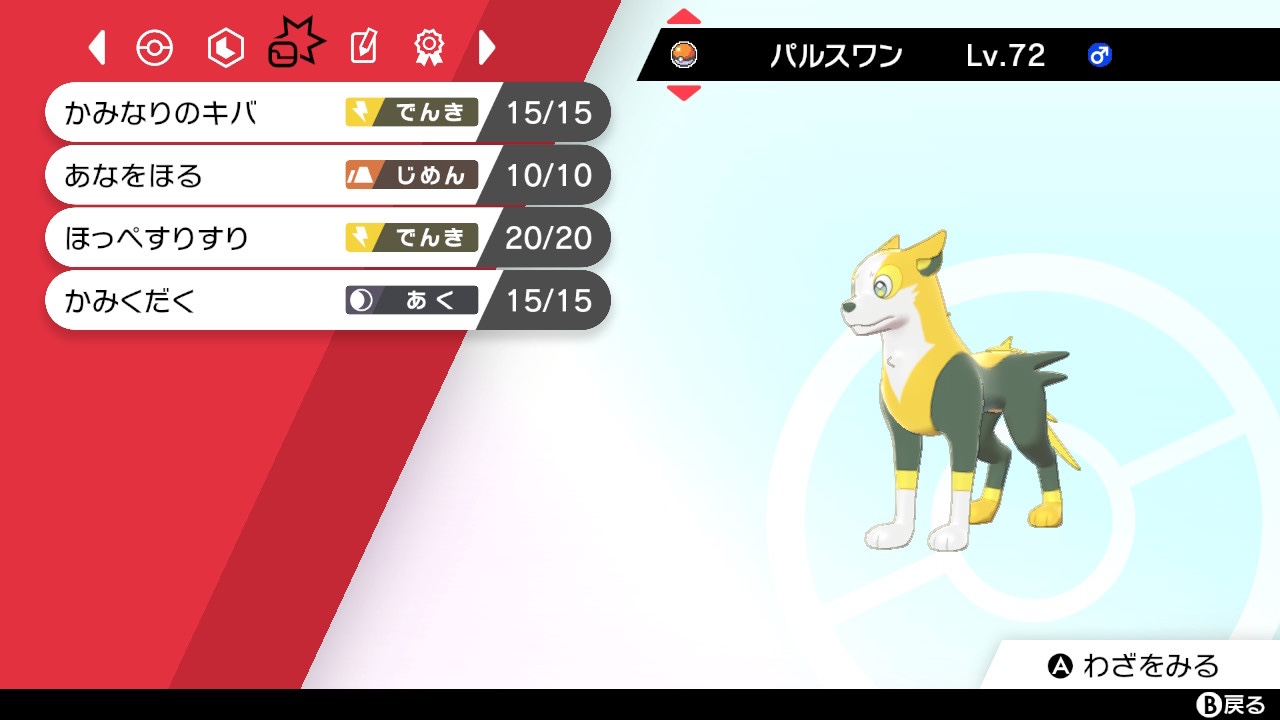 特性が『がんじょうな顎』なので、かみなりのきばとかみくだく入れてます!