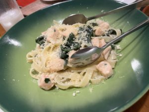 サーモンとほうれん草のクリームパスタ