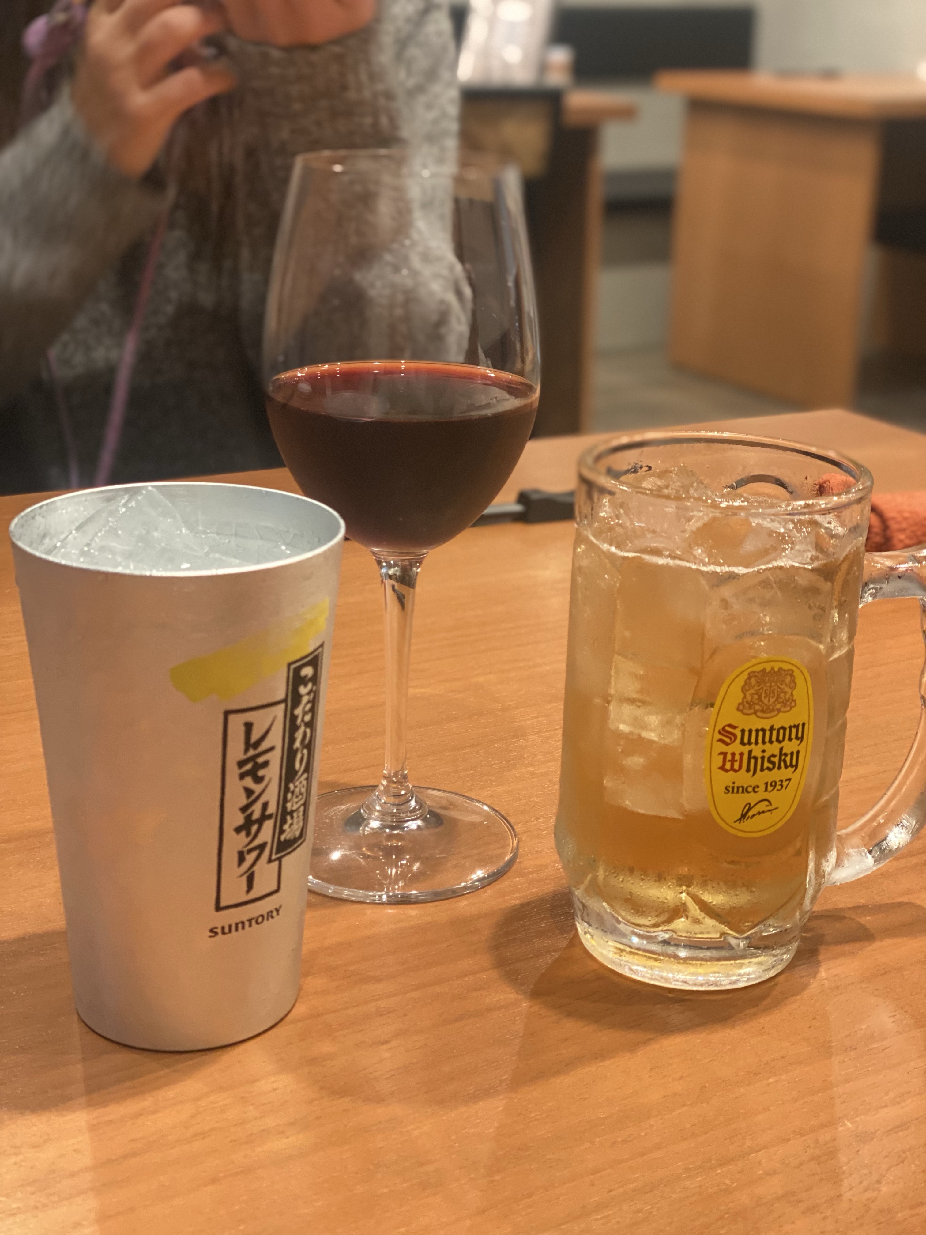 ということで各々好きなお酒を注文して乾杯です🍺🍷🍹