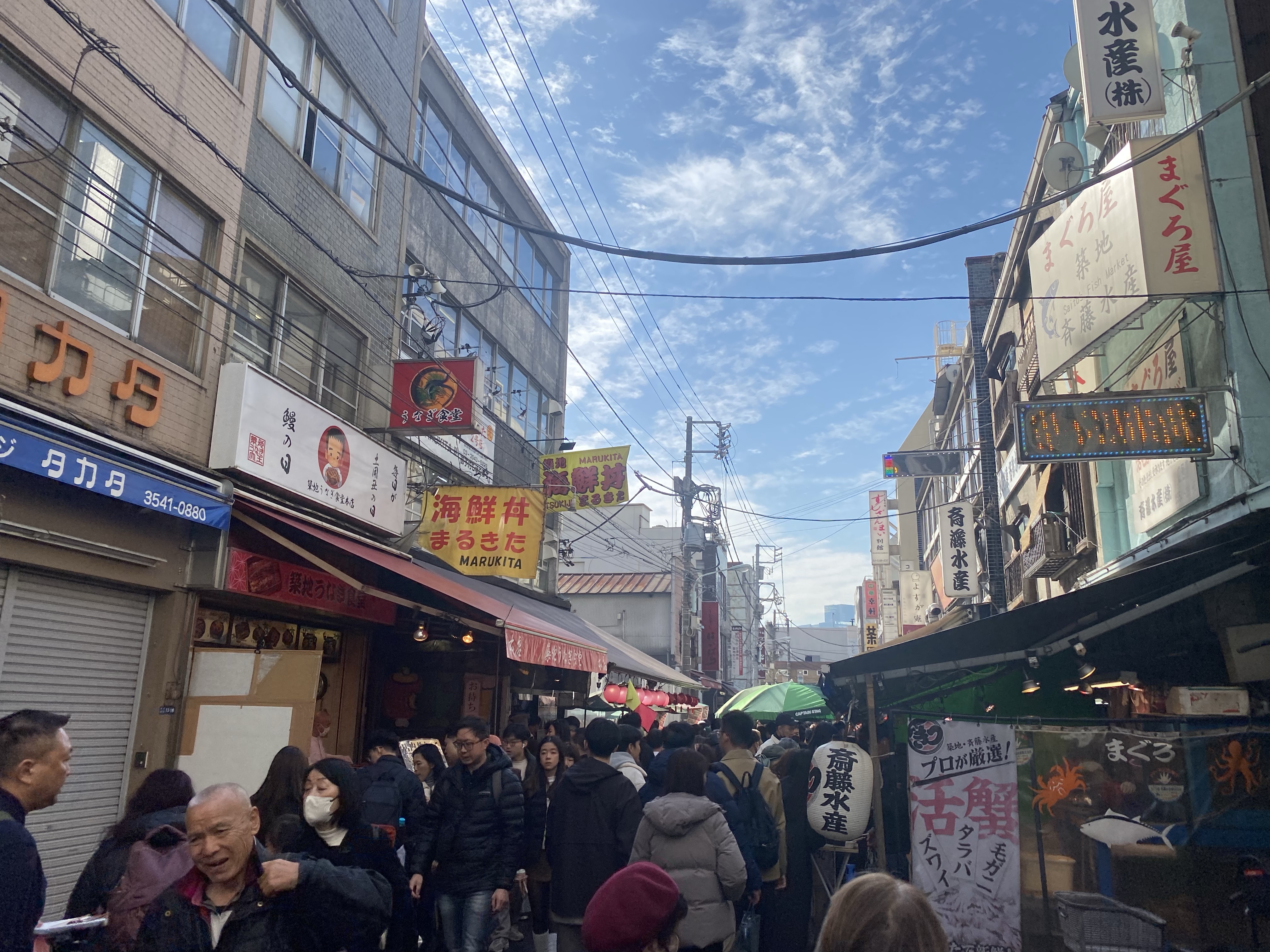 目的地に行く前に、まずはランチがてら母が行きたいと言っていた築地場外市場へ立ち寄りました🐡