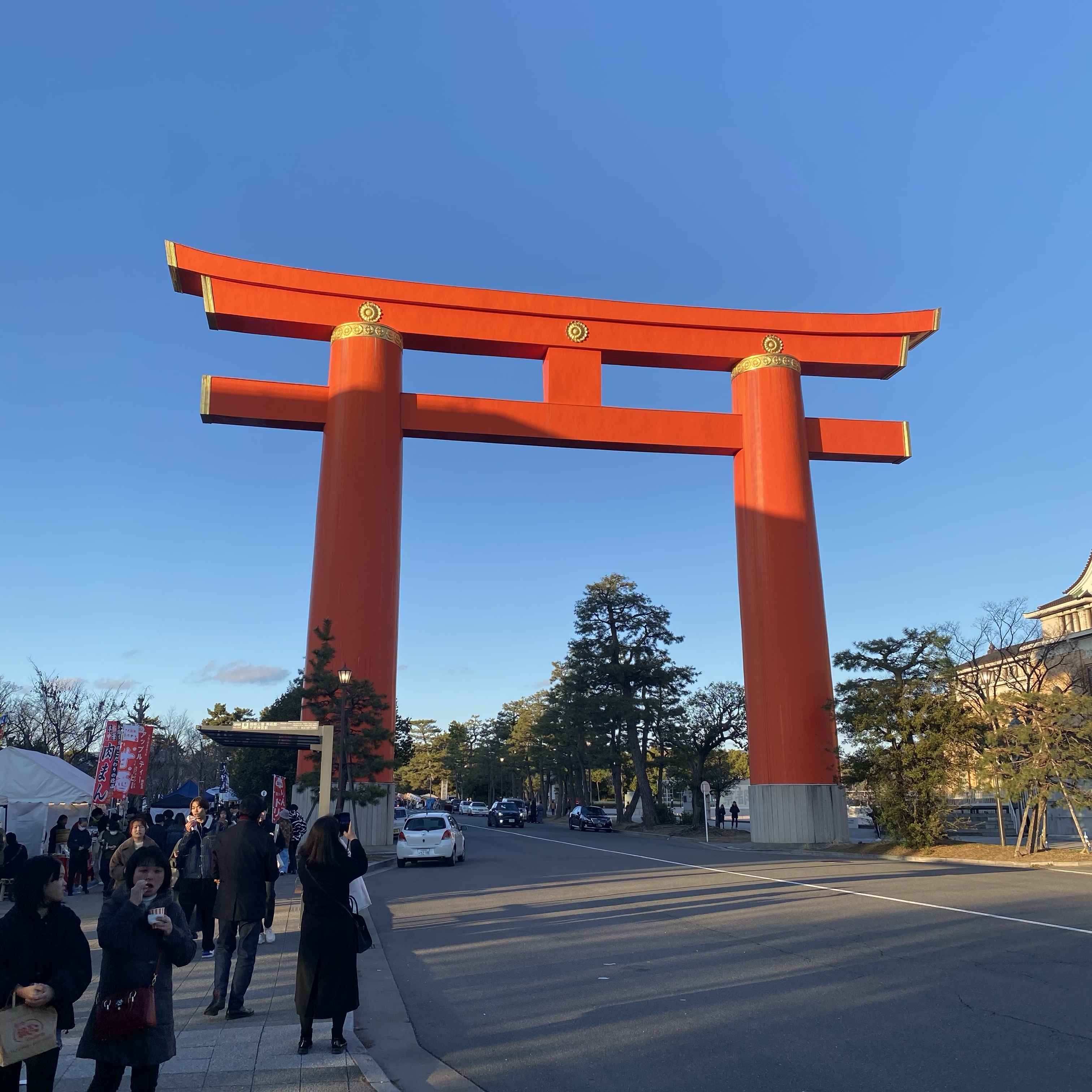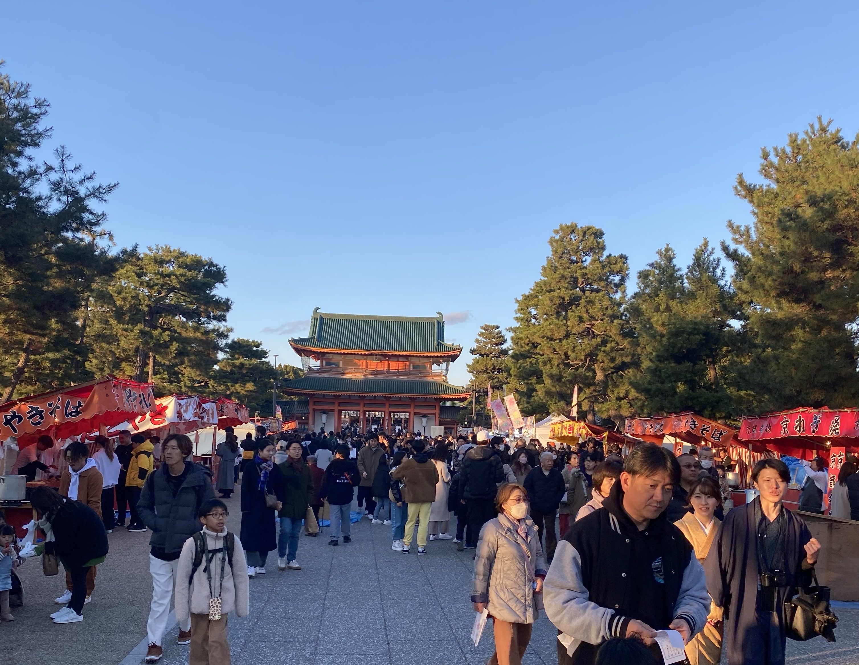 初詣時期の平安神宮は参道にたくさんの出店がでるのでとってもにぎやかです🎵