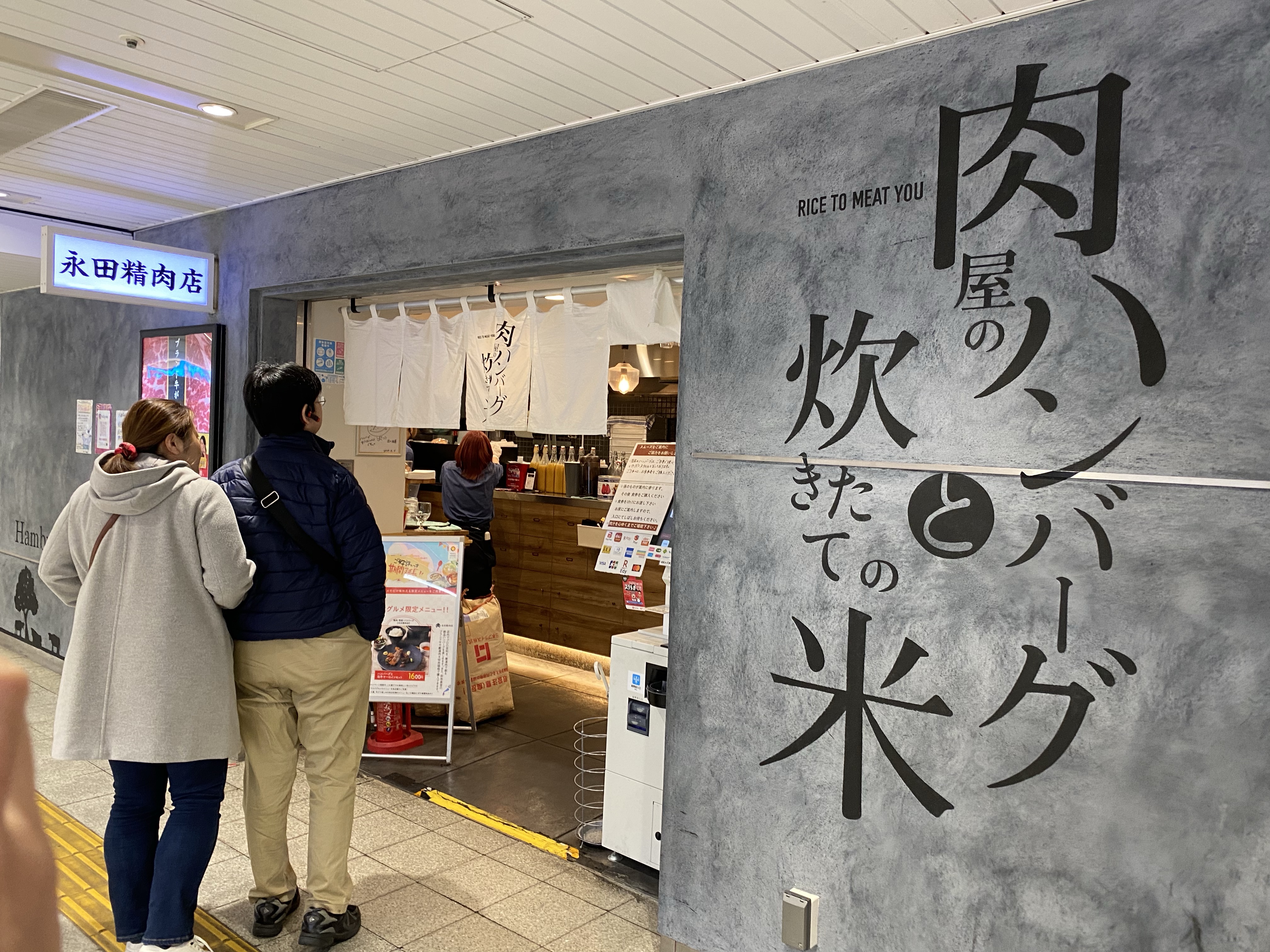 まずは友人が前から気になっていたという、大阪駅にある精肉屋さんが営んでいるハンバーグ屋さんへ!🍖