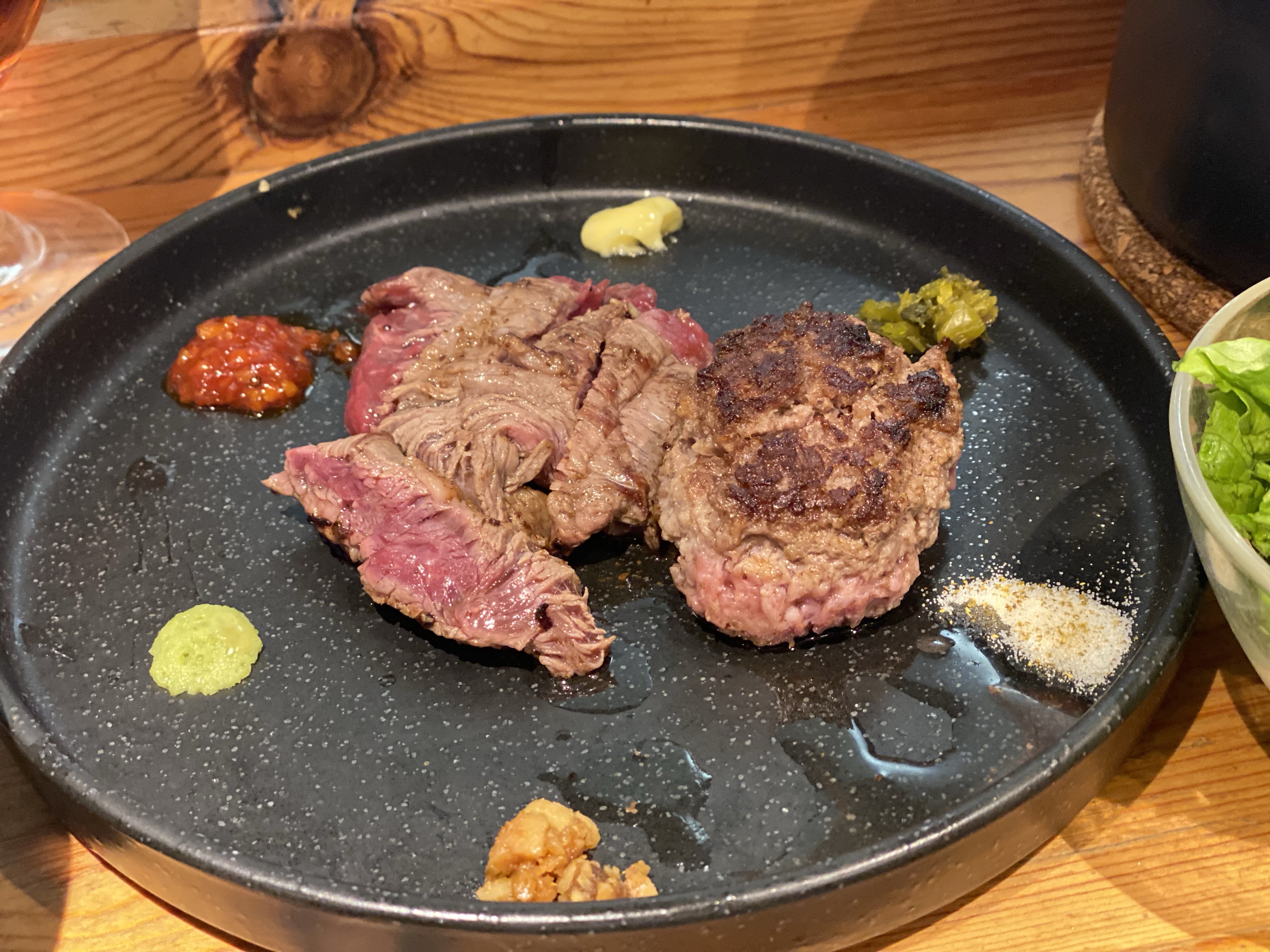 ステーキはミディアムレアめに、ハンバーグはしっかりめに焼きあげてからいただいいましたがどっちも超柔らかくてジューシーですんごい美味しかったです!!!!!