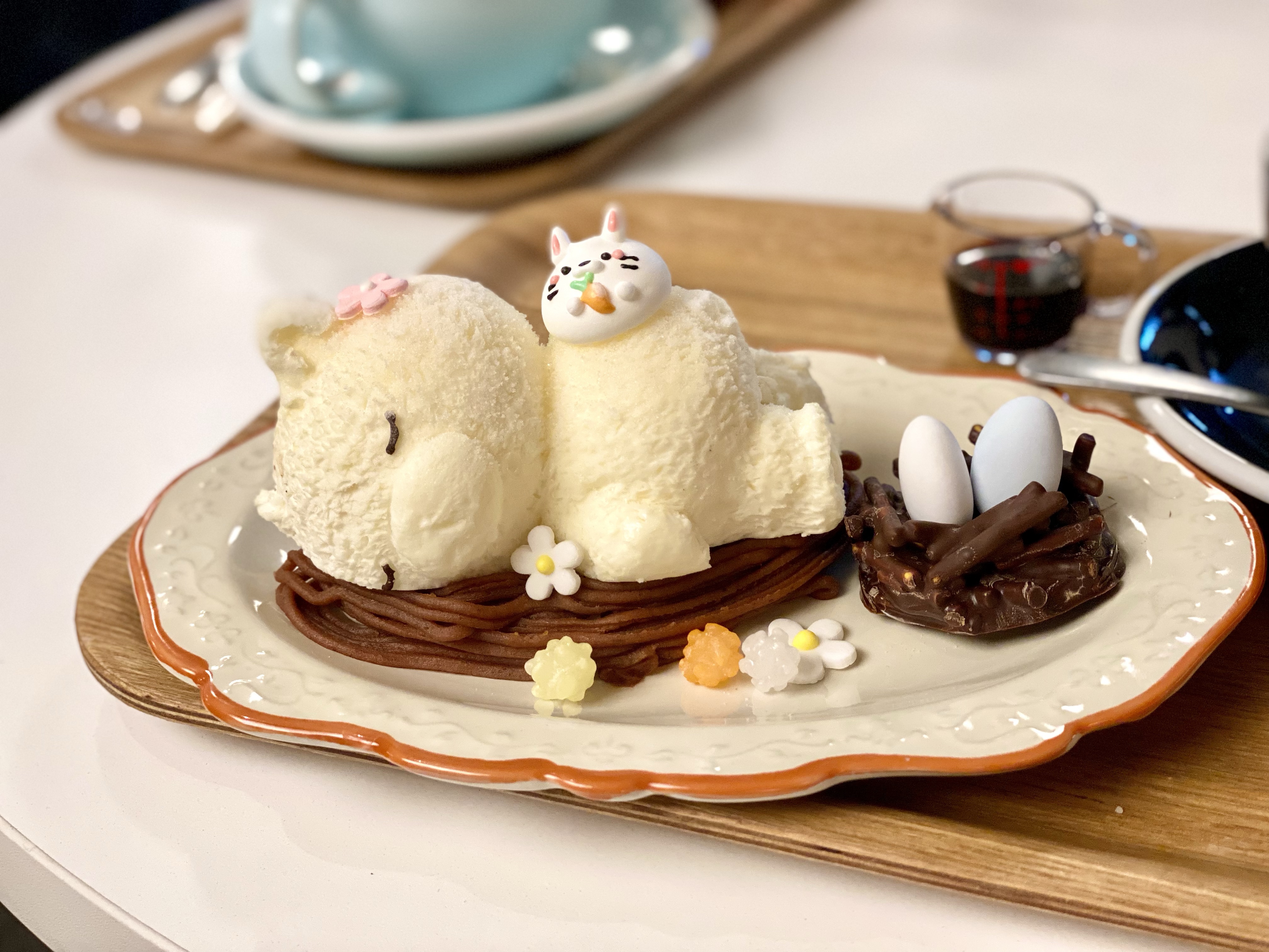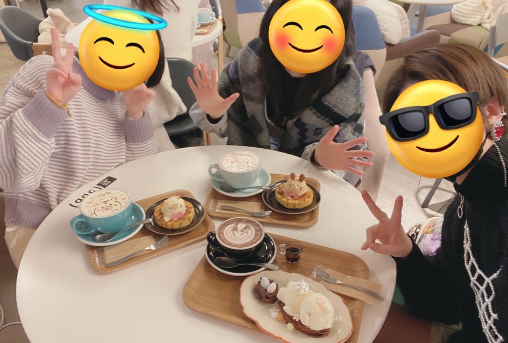 友人たちはバウムクーヘンの上にデコアイスされたアニマルスイーツを頼んでいました🐈🐇